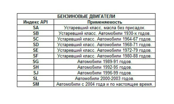Смазки с обозначением класса от SA и до SH являются уже устаревшими. Они принимались давно, с 1930 по 1994 год, и годятся только для очень старых моторов. Сейчас действуют классы SJ, SL, SM и SN. Эти масла предназначены для двигателей, выпущенных с 1997 года и позднее.