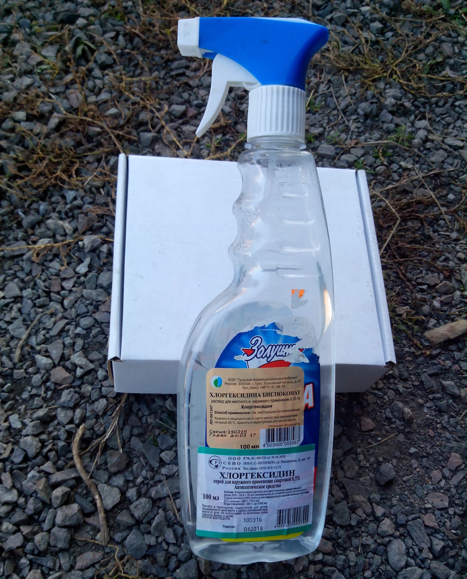 4. После просушки дезинфицируем фильтр недорогим средством Хлоргексидин (продается в аптеках без рецепта). Рекомендую Питерский на спиртовой основе — там и концентрация нужного нам вещества в 10 раз выше и сохнет быстрее. Обрызгиваем с двух сторон по полной, пока с фильтра не начнет капать. Снова его на просушку. После чего можно использовать по назначению. Если в наличии имеется два фильтра — то про покупку салонного фильтра можно надолго забыть :).