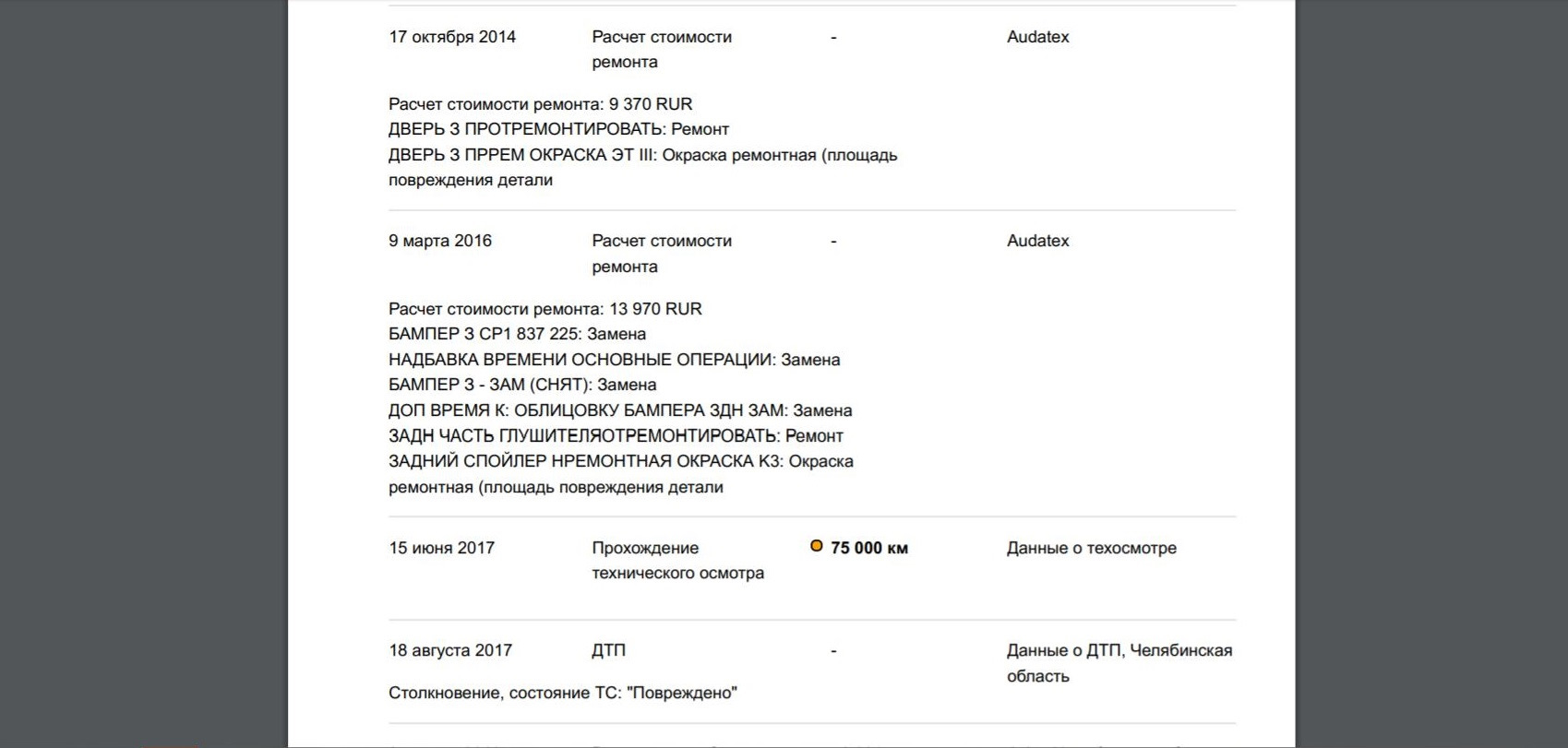 Просим VIN у продавца, мы же не тупорезы, чтобы сразу лететь и смотреть машину, пробиваем по VIN и видим: было какое-то ДТП, про которое Василий, почему-то решил не рассказывать. Да, меняли задний бампер и красили дверь. Видимо это и означает, что автомобиль в заводской краске…