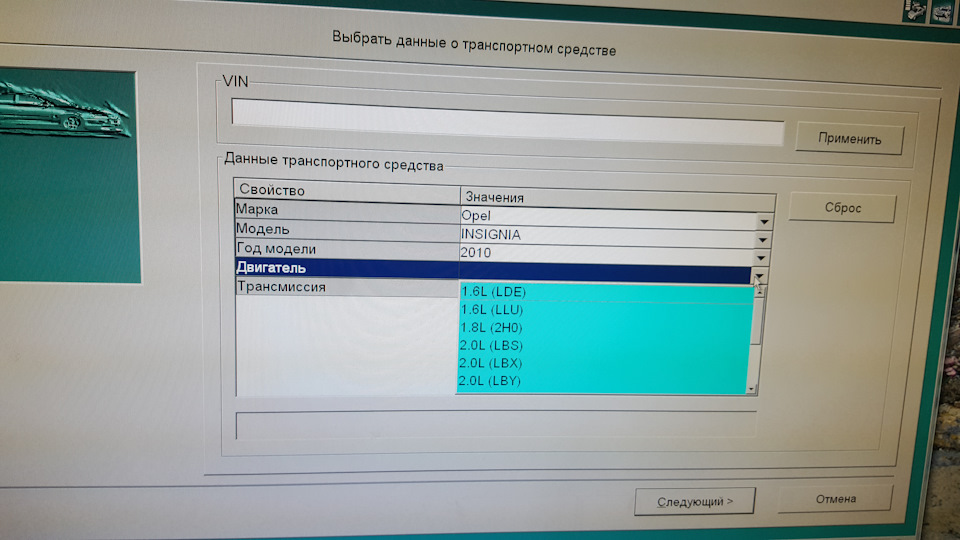 4. В открывшемся окне выбрать Группу (в нашем примере "Насос впрыска") и Программу (в нашем примере "Ремонт (снятие, установка, настройка)") и нажать кнопку "Следующий"