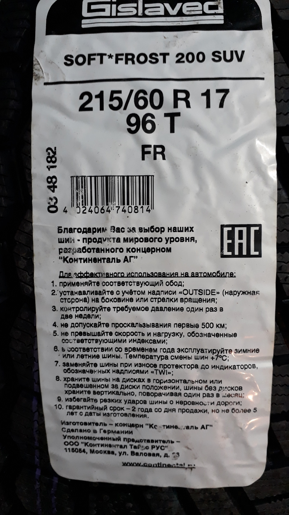 Как обычно, когда нет необходимости, что либо выбирать всегда очень просто, а как становишься непосредственно перед выбором, наступают муки выбора😅, круглосуточный просмотр различных тестов и всевозможных отзывов. Вот так и я, в начале остановился на hankook winter i cept iz2, даже заказ с магазине сделал, но почитав отзывы, сделал вывод что они говорят о нестабильной работе шины в различных условиях. На следующий день обратил внимание на gislaved soft frost 200. Отзывов и тестов о ней не много, но в основном все положительные. Поэтому выбор был сделан в её сторону и начался анализ цен. В итоге на авито, по приемлемой для меня цене, был найден магазин Шинный маркет. После обеда приехал на склад забирать свое "добро". На вопрос кто производитель, продавец начал искать мои шины и параллельно рассказывать что в России есть завод, но Континенталь контролирует качество продукции и считает его одинаковым по всем своим заводам. Но добравшись до моего комплекта и изучив все надписи на колесе, о чудо, объявляет мне что шины made in germany и произведены на десятой неделе 2018 года. Данной новости я был очень удивлён и рад соответственно, я думал у нас только реализуют шины с Калуги, а тут такой сюрприз. Короче быстренько оформив покупку, шины благополучно переехали в гараж до н8аступления холодов. По мере использования обязательно будут отзывы. Всем добра.