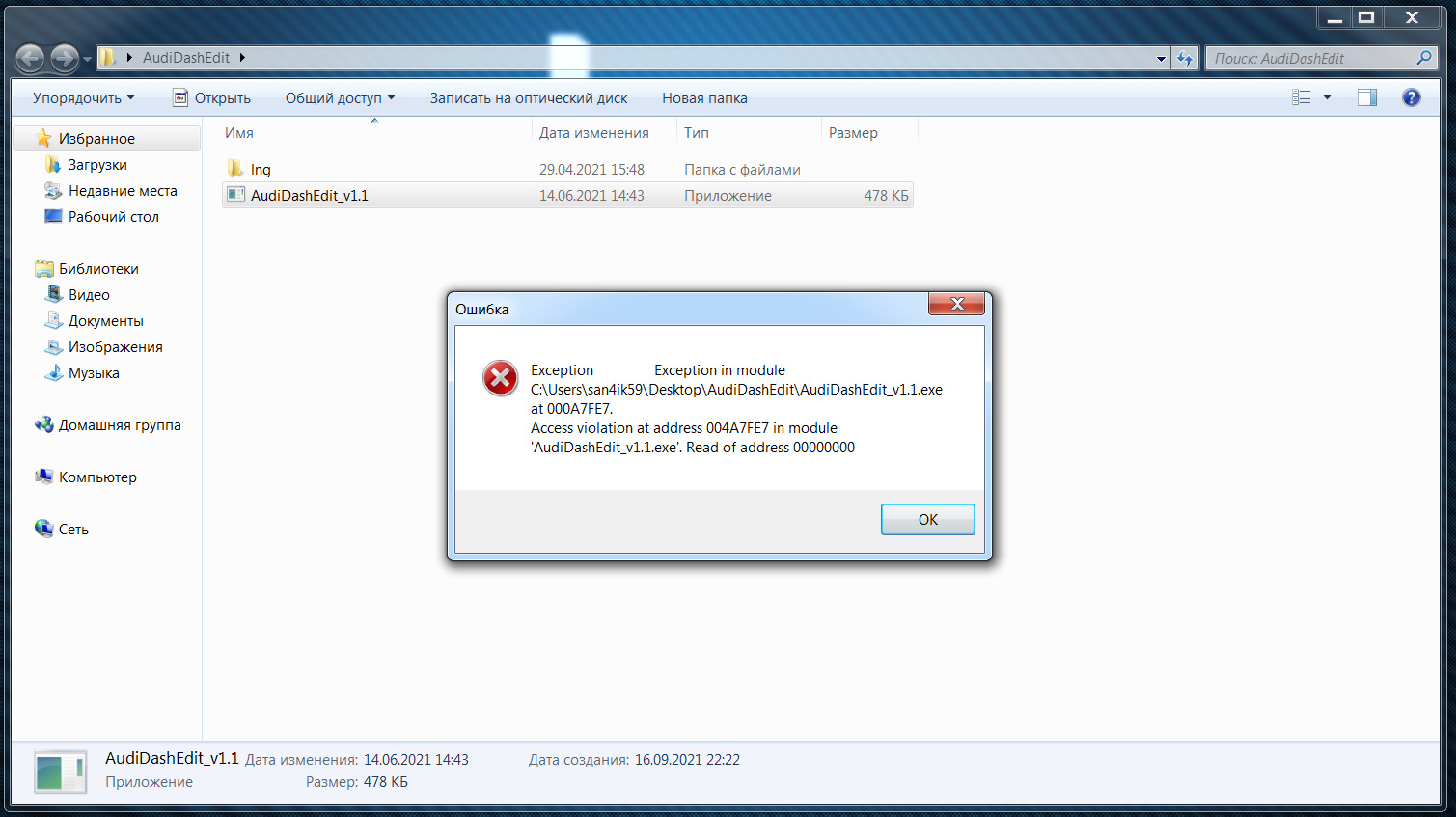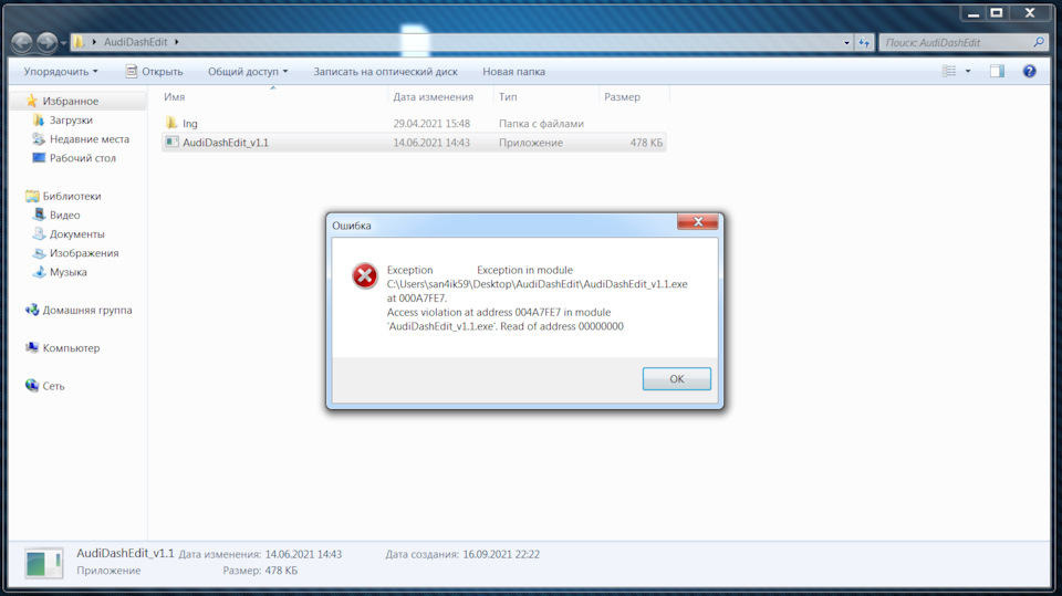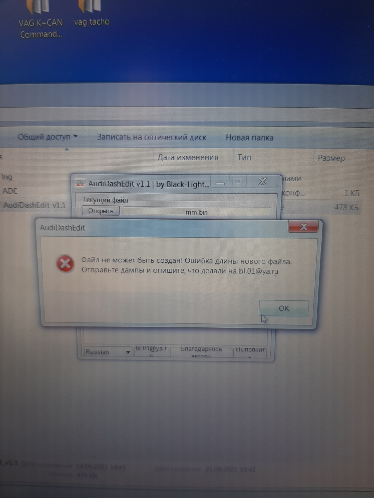 Захожу в audidashedit выбираю дамп ММ и ставлю галочку на перенос данных, выбираю второй дамп куда нужно занести данные то есть vdo жму выполнить и пишет такое, в чем может быть причина?