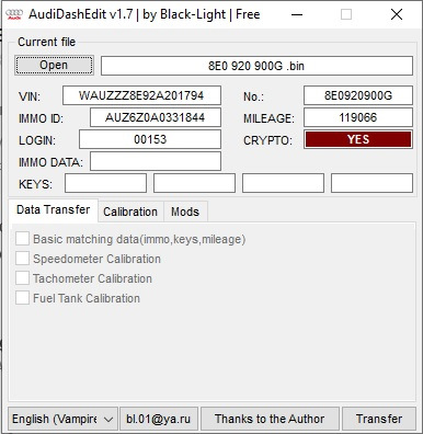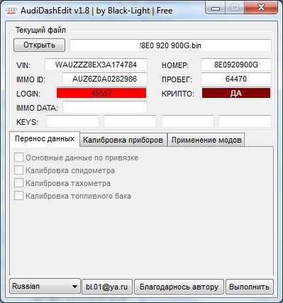 AudiDashEdit — программа для переноса данных при замене приборной панели, не требующей дальнейшей привязки ключей и адаптации к эбуд (иногда требуется :) ). Так же перенос/изменение калибровок приборов и применение модов без hex редактора.