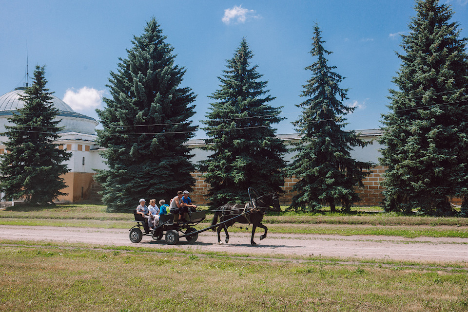 А за полтинник вас прокатят по кругу тренировочного поля на повозке, так что цены здесь не кусаются. Взрослый билет на экскурсию нам обошелся в 250 рублей за человека.
