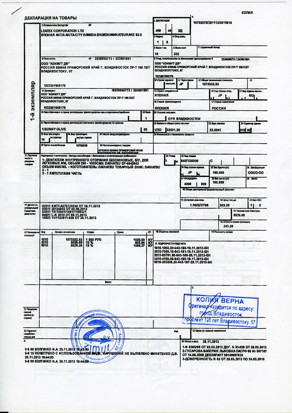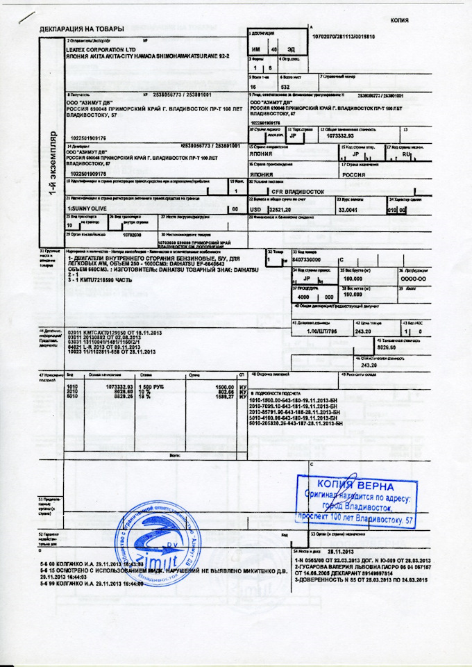 Вот бланк ГТД, в чем здесь можно подделку углядеть? Контрактные моторы, кстати, бывают не только на прули. И какой она таможней выдана не имеет никакого значения. У нас на одного грамотного сотрудника 10 не грамотных приходится, но никак не наоборот.