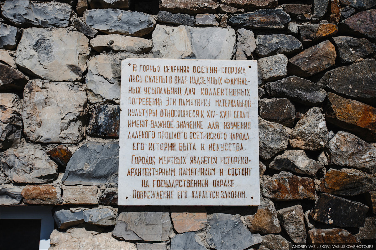 «Город Мертвых» находится на окраине Даргавса и виден издалека. За вход осенью 2016 здесь просили 50 рублей. Заодно можно купить магнитик или какой-нибудь сувенир.