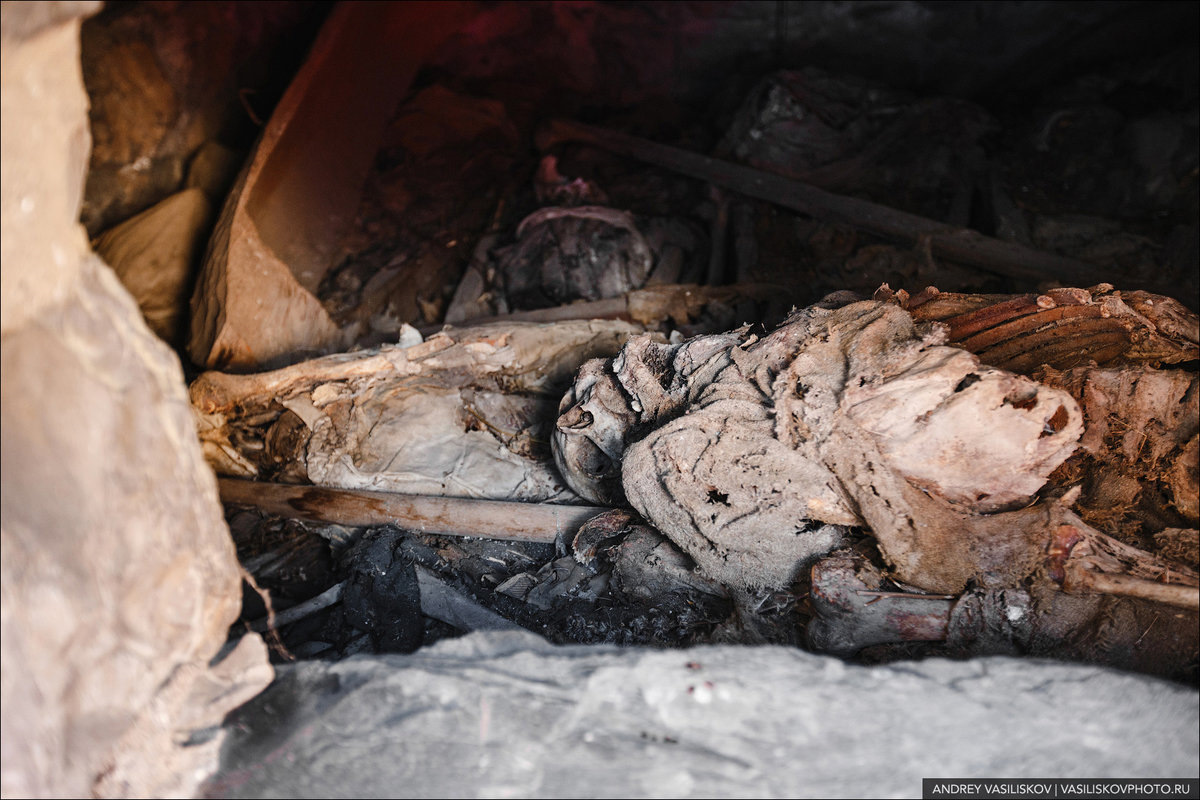 Каждая из усыпальниц состоит из нескольких ярусов и вмещает в себя до 100 останков, таким образом всего здесь похоронено чуть меньше 10000 человек. Учитывая тот факт, что Даргавс совсем небольшой поселок, представьте себе сколько лет здесь скапливались останки людей. Говорят, что этим склепам не менее 600 лет.