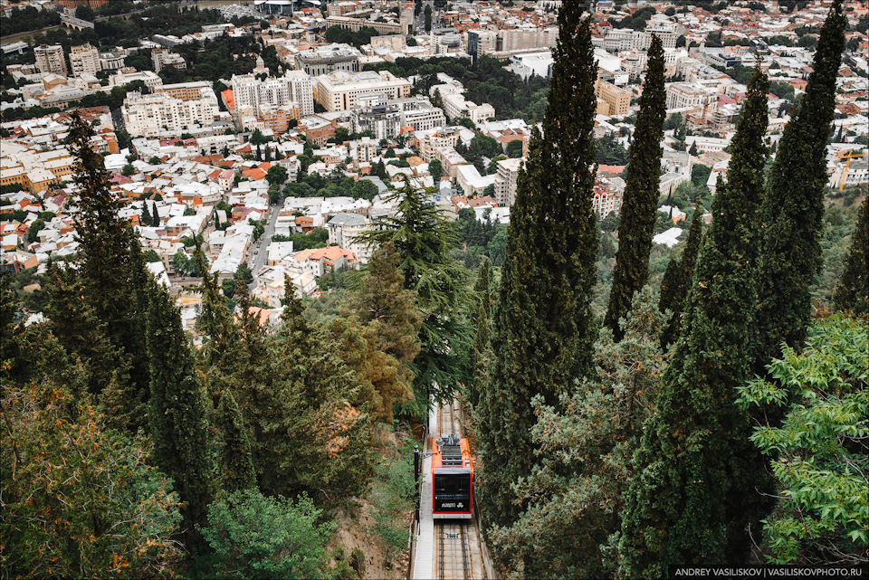 7. Продолжим изучать небанальный общественный транспорт Тбилиси и теперь прокатимся на фуникулёре. Он идёт на гору Мтацминда, а стоимость его составляет всё те же 2,5 лари в одну сторону. Плюс 2 лари за невозвратную карту, на которую вам запишут поездки. С Мтацминды вновь любуемся городом, а спуститься вниз лучше по лестнице, времени это много не займёт.