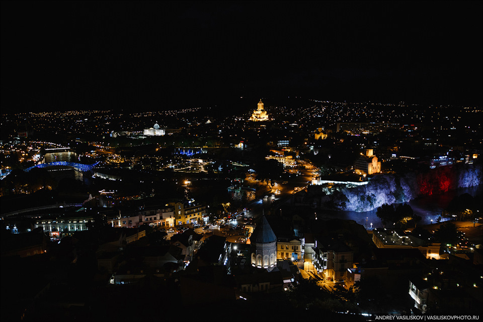 8. И вновь поднимаемся на Нарикалу, но теперь уже в вечернее время. Горящий Тбилиси прекрасен и этим видом можно любоваться чуть ли не бесконечно.