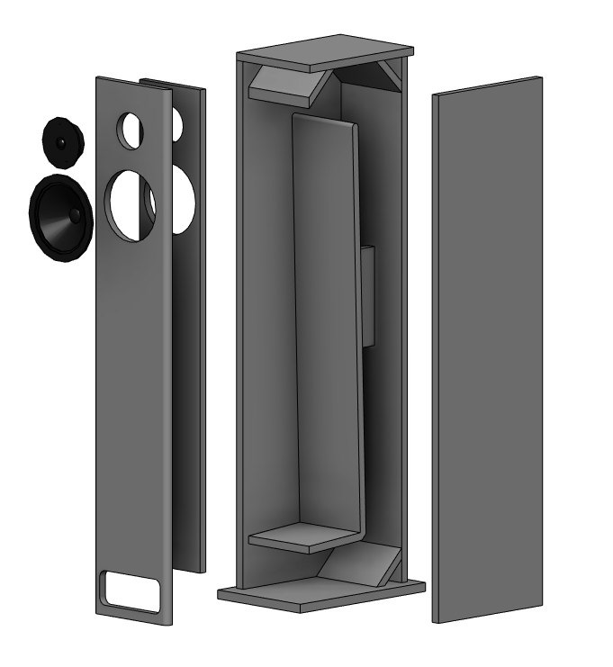 UPD. Часто поступают запросы по стоимости изготовления данной акустики. Отвечу всем сразу, сделал калькуляцию по нынешним расценкам на конец 2023 года. В корпусах из МДФ с отделкой шпоном и лаком, стоимость данной акустики под ключ выходит 150 000р за пару. Поскольку много позиций под заказ сроки изготовления 1-2 месяца. При желании акустику можно сделать в наклонном корпусе с двойным портом лабиринта, но в таком случае габарит в глубину немного увеличится.