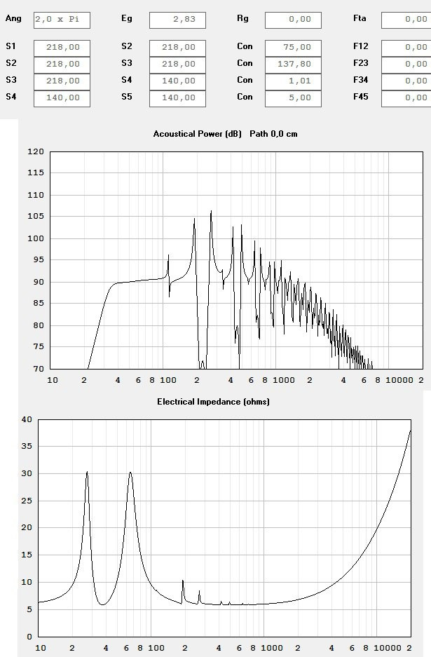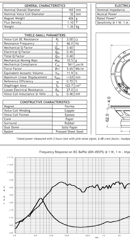 У пары динамиков параметры почти не отличаются, я привел параметры одного из них. Параметры указывают на повышенную жесткость подвеса, относительно паспорта. Я не знаю как их так надо размять чтоб подойти к паспортным параметрам, в реальной жизни они у меня скорее задубеют чем разомнутся. Поэтому взял за опору в расчетах эти параметры.