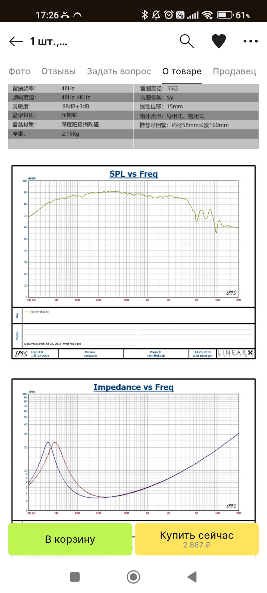 Измерил параметры Т-С, сформулировал вопрос на Вегалабе, т. к. я дилетант очень бы хотел услышать там Ваше мнение, спасибо!