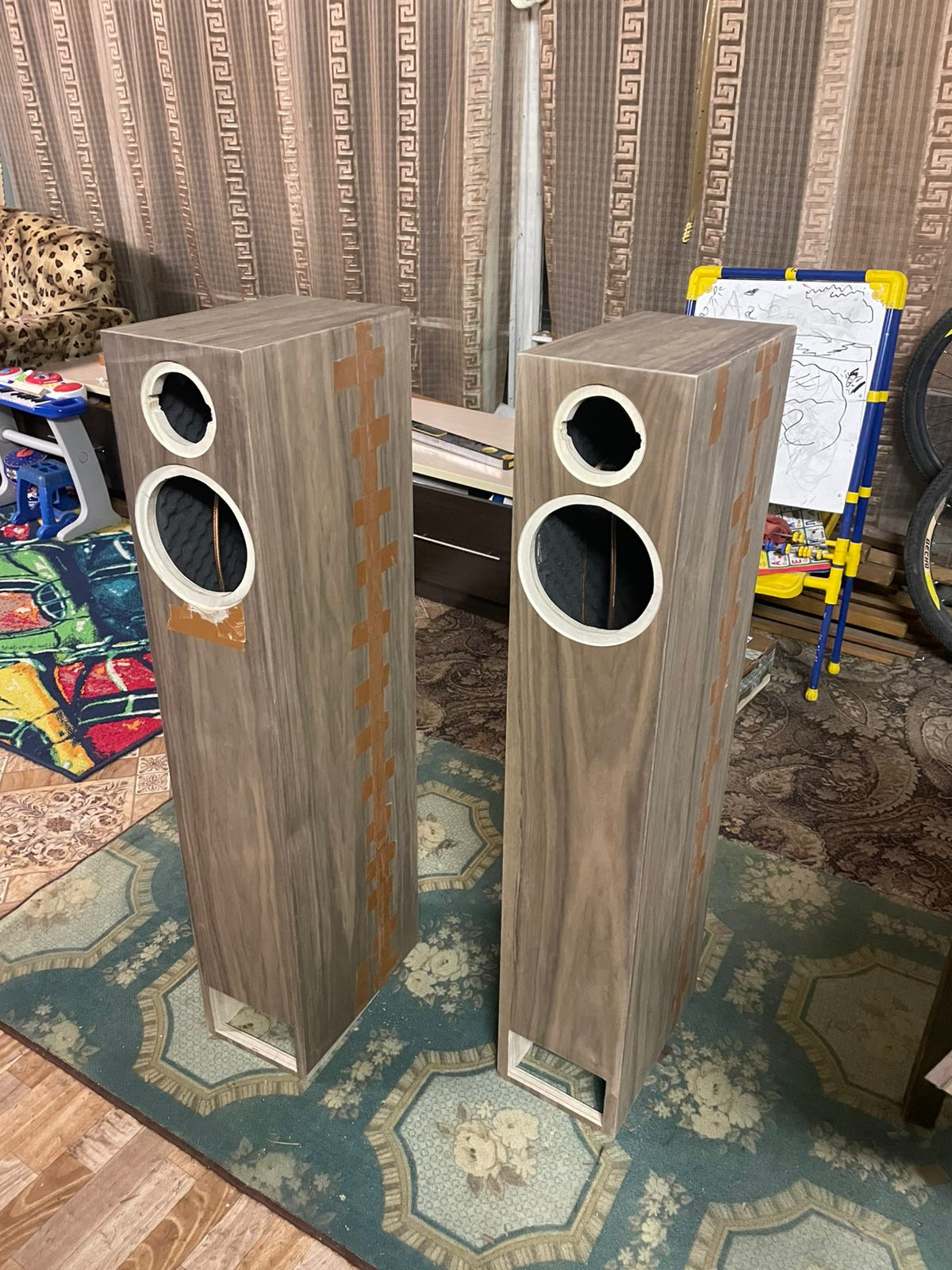 Это не первая акустика которую мне довелось спроектировать и собрать, до этого был опыт как очень основательного апгрейда советской классики, так и сборки акустики с нуля. Супругу не устраивал форм-фактор моей советской классики, большие широкие гробы которые не вписывались в интерьер и занимали слишком много места