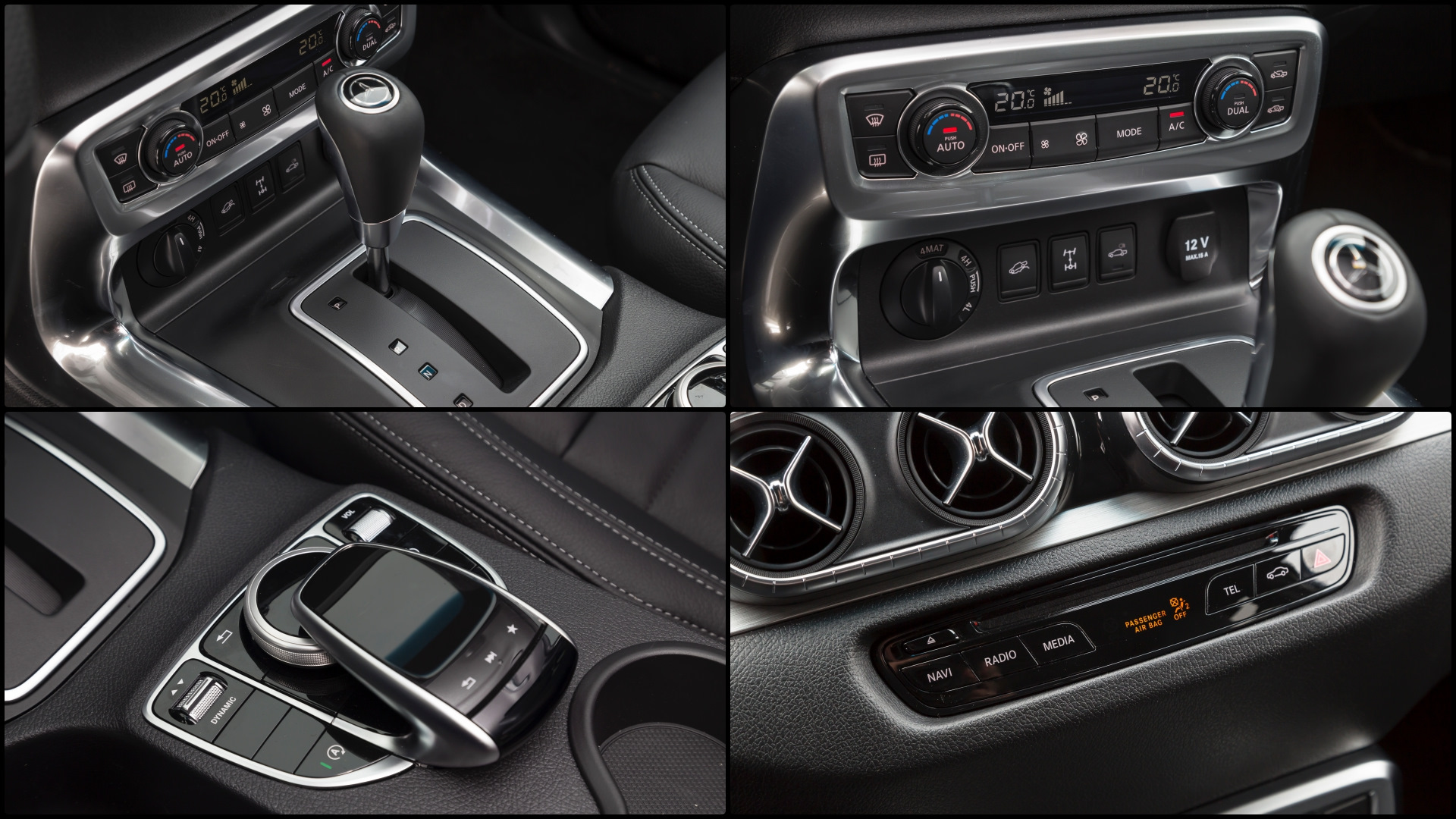 Пикап может похвастать даже фирменной мерседесовской качелей выбора режимов движения — комфорт, спорт, оффроуд, вот это все. Однако подвеска у X-Class не адаптивная, усилитель руля — гидро, так что изменяется лишь настройка автомата и полного привода 4Matic.