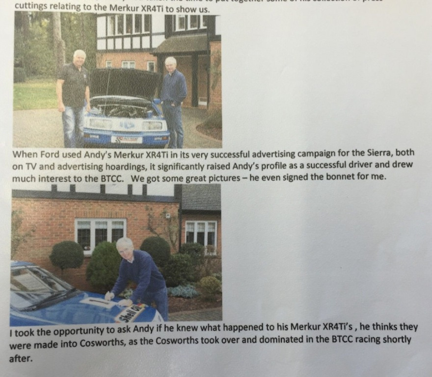 Митчеллу также повезло встретить самого Энди Роуза и задокументировать это событие в папке истории автомобиля, включая фотографии того, как Энди Роуз подписывал капот!