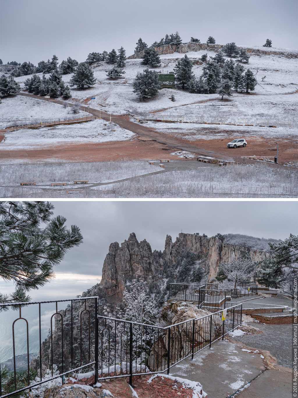 Помню, когда я впервые на Ай-Петри, я был в шоке от количества людей на вершине горы, рынка сувениров с зазывалами и тому подобного треша. А теперь посмотрите на фото ниже. И это главный плюс путешествий в несезон! Ты действительно можешь практически в одиночестве насладиться природой, погрузиться в неё и прочувствовать хоть немного.