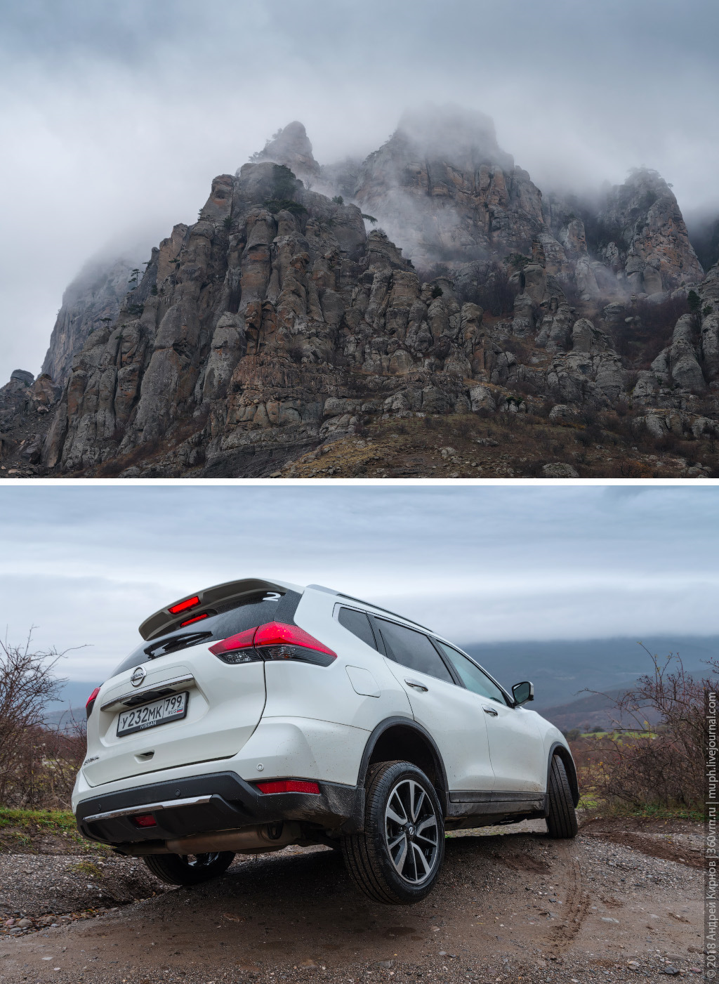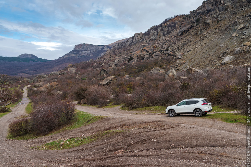Это не значит, что на новом Икстрейле нельзя ездить, например, на рыбалку. Можно. Но осторожно. Относительно внедорожный тест мы устроили ему в одном из самых интересных для меня в ландшафтном плане мест Крыма — в Долине Привидений. Это скопление скал причудливой формы на западном склоне южной гряды массива Демерджи.
