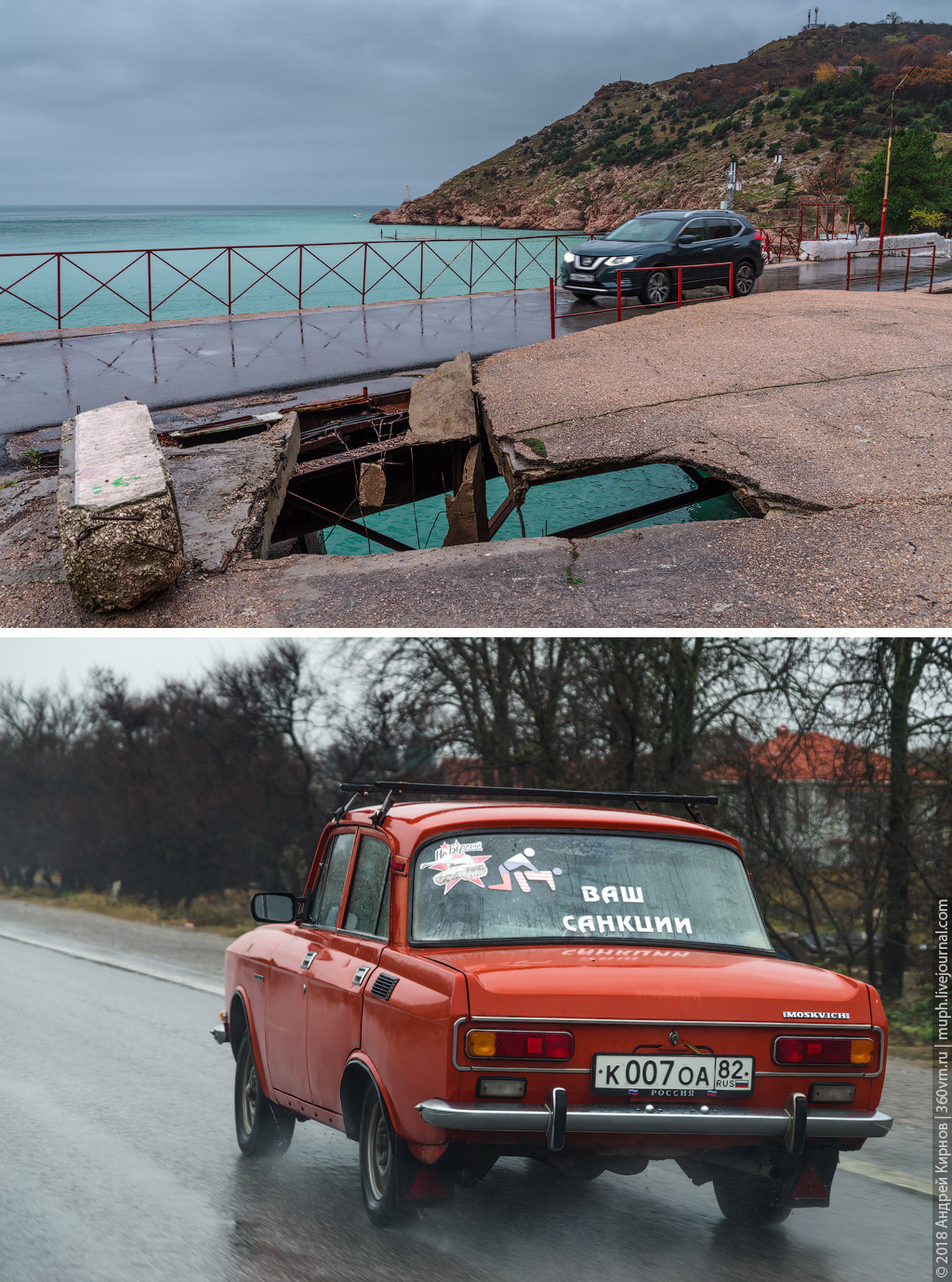 И надо сказать, что хоть свет в этот раз и не отключали, но у меня было устойчивое ощущение, что в Крыму не меняется ровным счетом ничего. Кроме моста, разумеется. Но, правда, не того, что на фото ниже. Это Балаклава. За нее мне почему-то всегда особенно грустно. А на следующем фоне оранжевый М-2140 неунывающего местного жителя. Кстати, в линейке цветов нового Икстрейла тоже появился позитивный оранжевый.