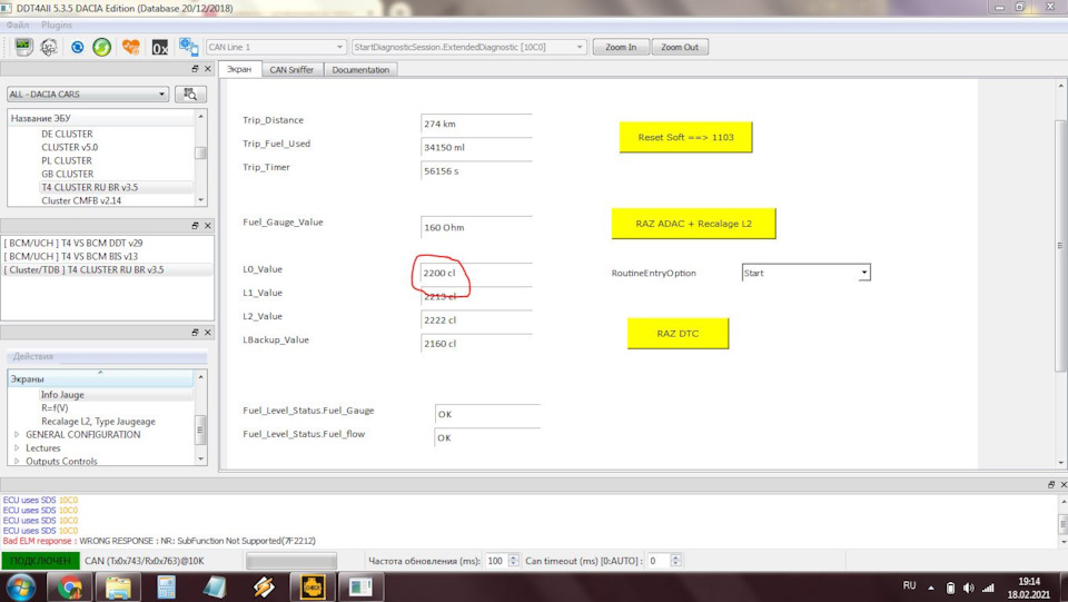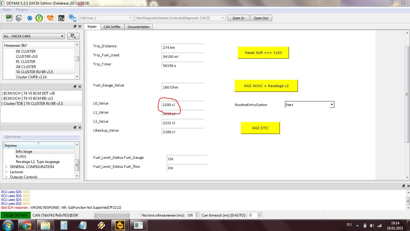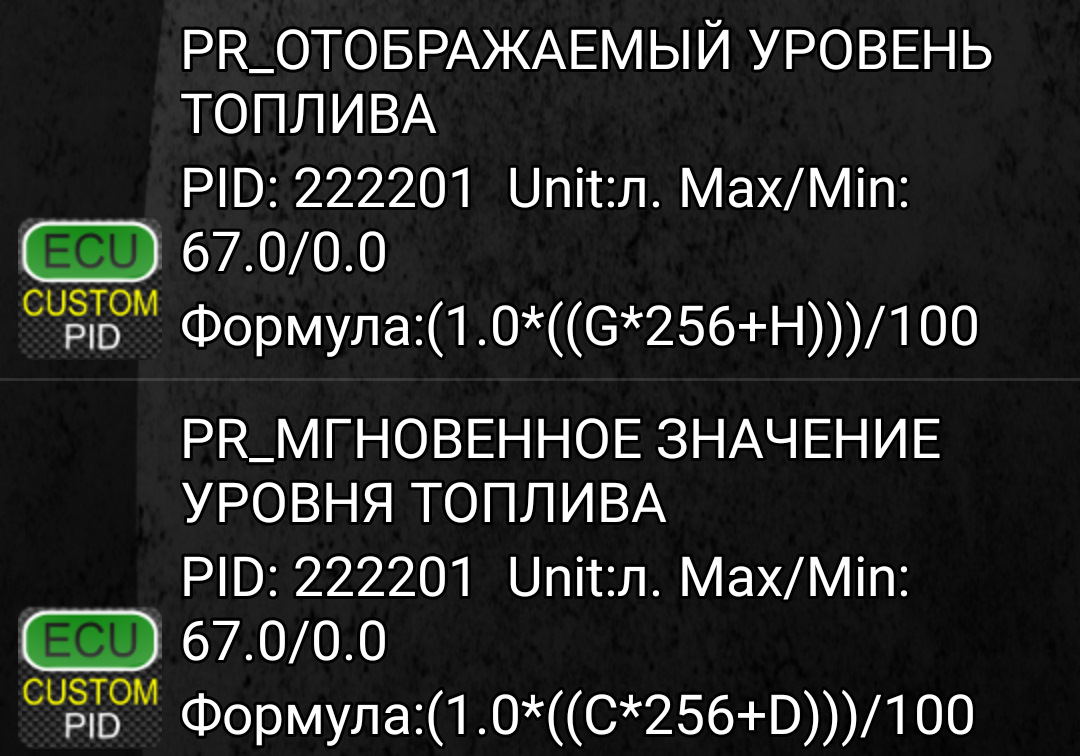 Подскажи пожалуйста. Стоит TORQUE PRO. Вывел показания остатка уровня топлива в баке на экран. Показывает -2.6 всегда. Добавил PID с другого блока (блока панели приборов). Так понимаю что одновременно читать с блока впрыска и блока панели приборов программа не может. Как можно исправить?