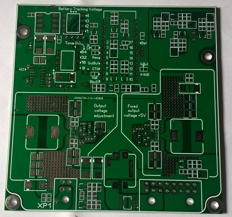 Ещё один источник питания DC-DC с условным выходным напряжением +/-5В и с током нагрузки до 10А на микросхеме MP8762 в корпусе QFN 3X4 . Была разработана и заказана четырёхслойная печатная плата, но в этот раз что-то у "китов" пошло не так… В межслойных переходах на производстве допустили "коротыш" и в итоге плата, как полноценный блок питания уже не работает… Но, как отдельный модуль DC-DC испытать смог.