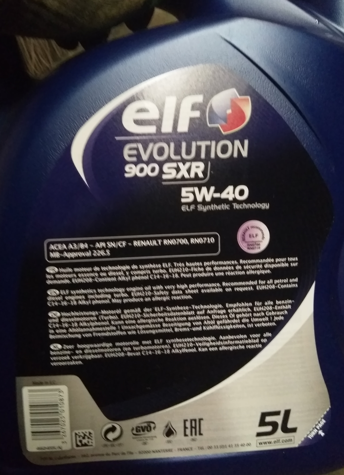 Покупал в ноябре масло Elf evolution 900 sxr 5w40 через официальную розничную сеть, в РФ.