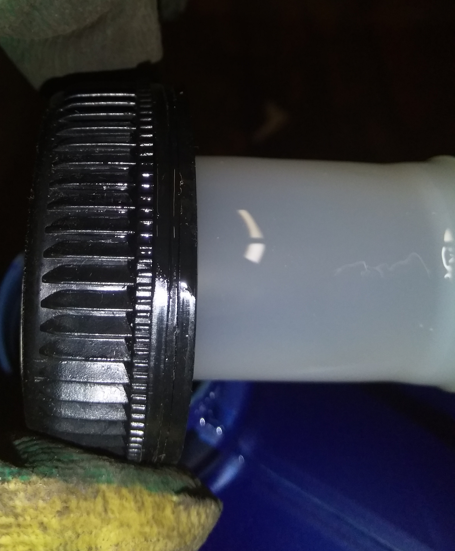 Но при откручивании крышки, кольцо не разомкнулось и лейка вылезла вместе с крышкой.