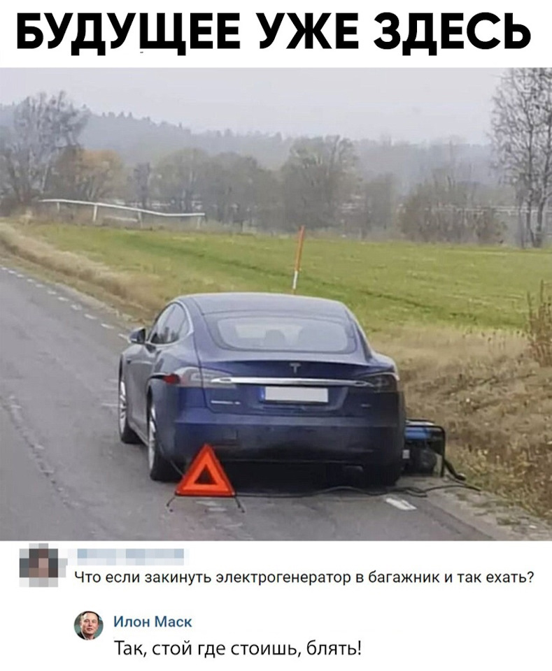 Тэсла это далекое будущее для отсталой России. Да и Гелик тоже — заправить-то качественным нечем, кроме мочи из того же коровника.