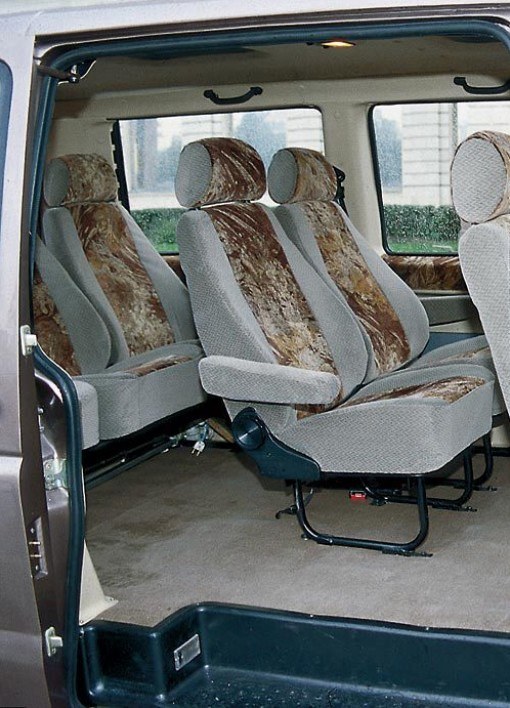 Передние дисковые, вентилируемые тормозные механизмы с плавающей скобой, задние барабанные тормозные механизмы с автоматической регулировкой зазора, ремни безопасности инерционного типа с регулировкой по высоте для передних сидений, откидные сиденья.