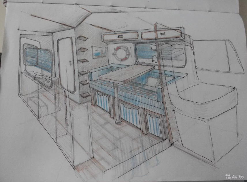 Для достройки есть вся инженерка: газовый бойлер, дизельный отопитель-фен, холодильник газ-электричество 12\220, раковина, баки, баллон газовый и прочее прочее… Осталось зашить утеплителем, построить стенки душевой, сделать мебель. Есть дизайн-проект. Спальные места предусмотрены в алькове и внизу, всего 4. Вложено в машину намного больше, делали для себя, продаем вынужденно, изменились жизненные обстоятельства. Стройку машины описывал в интернете, при необходимости скину ссылки, можно будет посмотреть, что делали все на совесть, о продаже и не думали ).