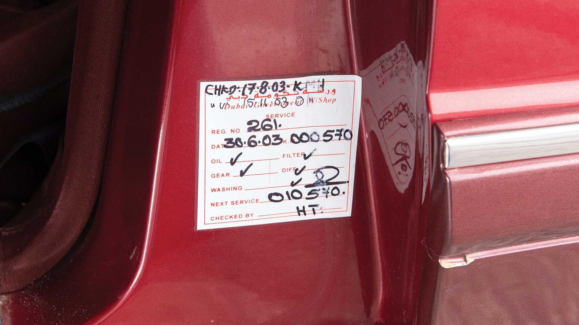 И если позволите, еще одно дополнение. Скорее всего автомобиль не служил в Dubai Government Workshop, а только проходил там обслуживание, либо технический контроль. Полагаю, собственник автомобиля отметился наклейками на задних стеклах: там различима стилизованная надпись Montreal и это мог быть, например, отель. Однако, найти подобный логотип мне пока не удалось.