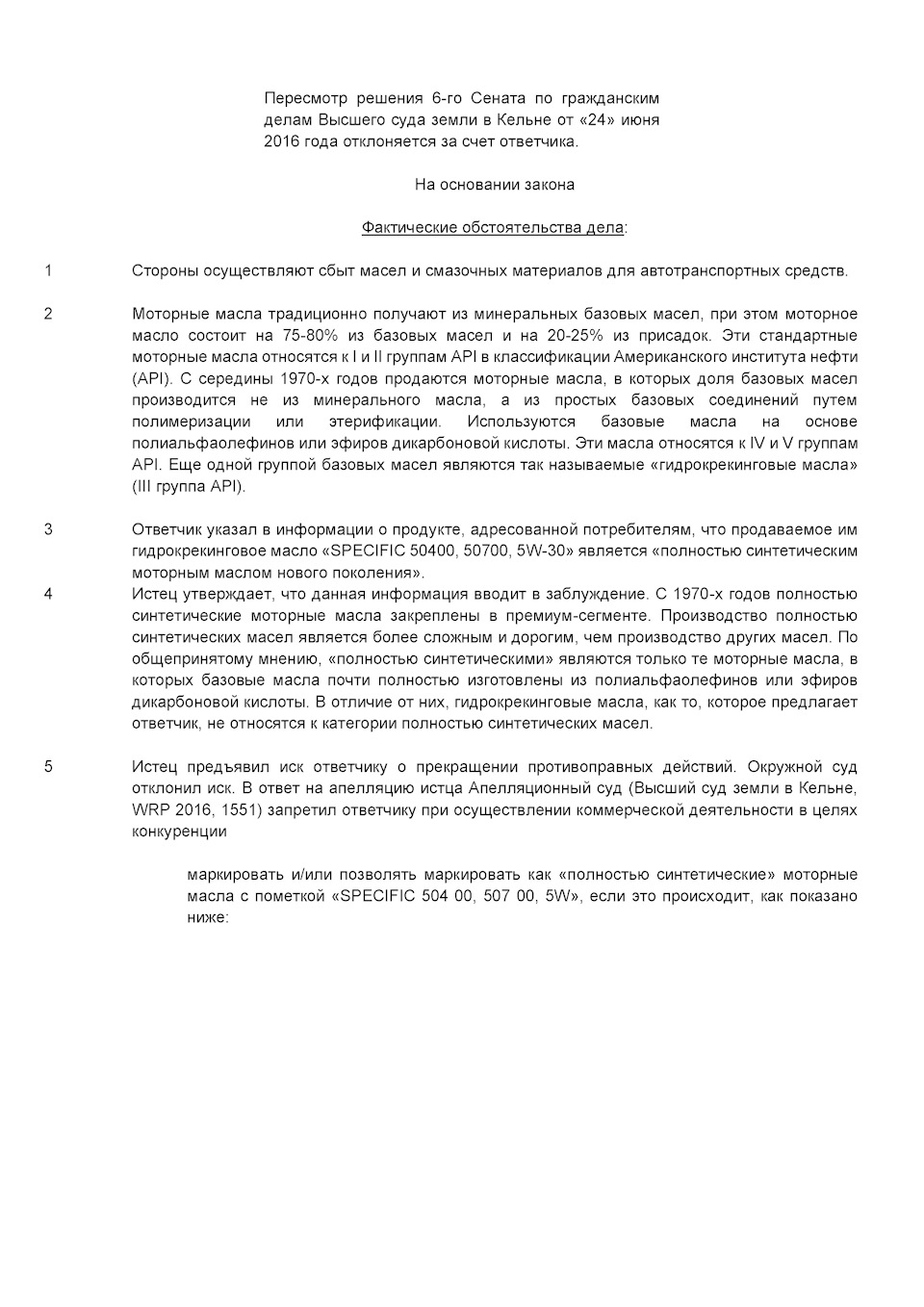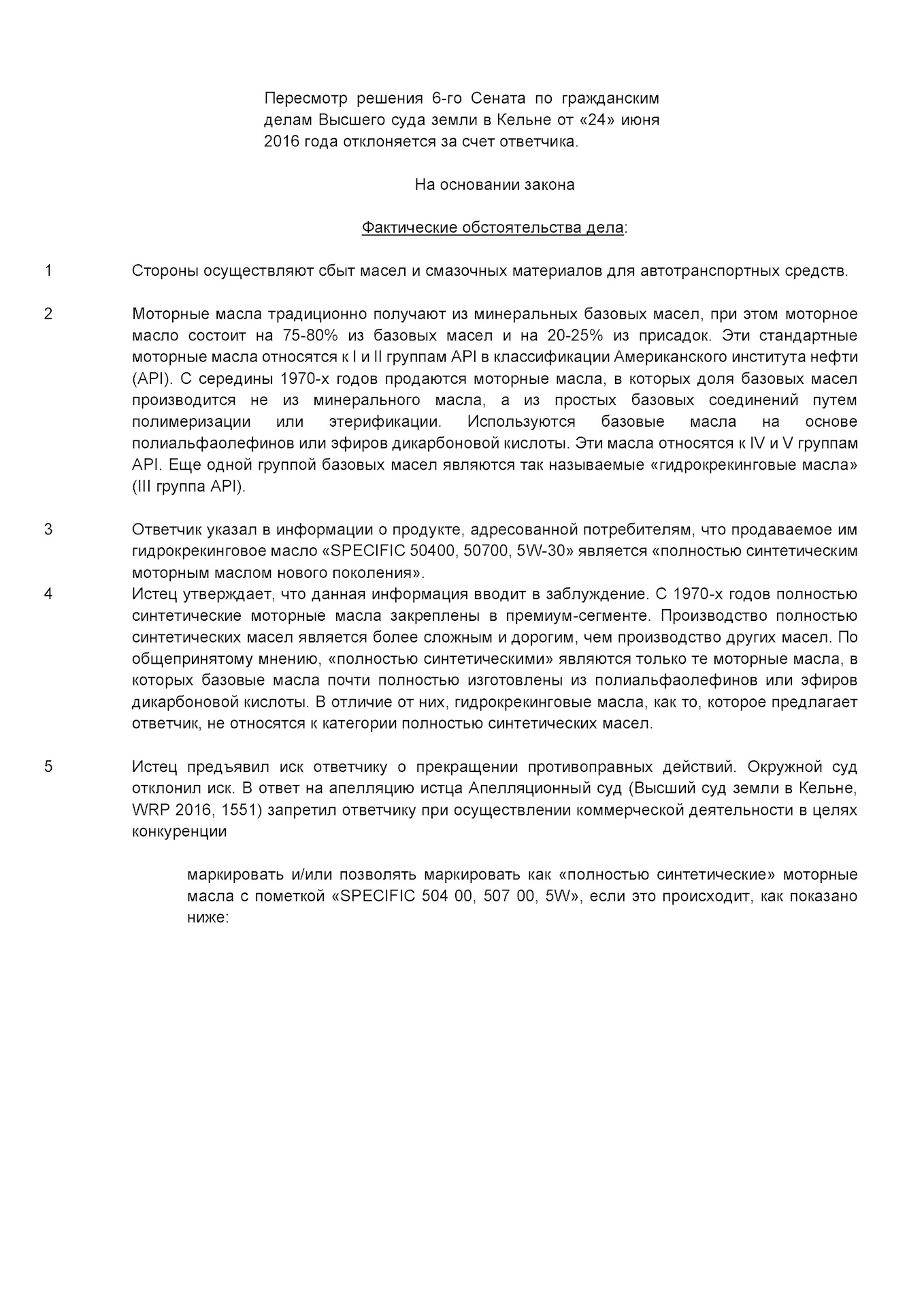 Суть вкратце здесь www.drive2.ru/b/518479931831747385/ а в этом посте подтверждающие судебные документы. В Германии по закону нельзя писать на гидрокрекинговых маслах Full Synthetic или 100% Synthetc если эти масла таковыми не являются. Мотюль на этом подловили и по суду заставили убрать с этикеток эти надписи.