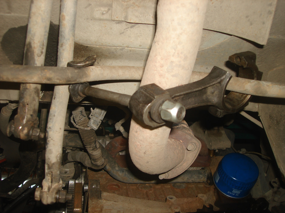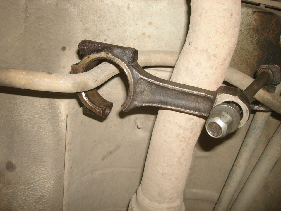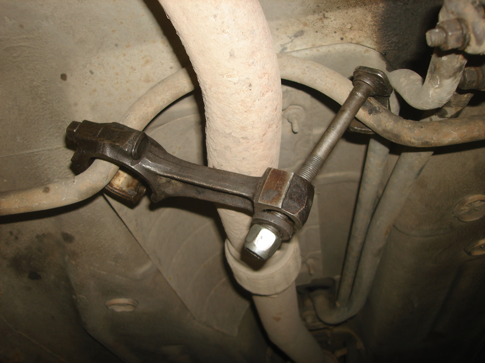 Данное изделие изготовлено из 01 шатуна с вырезом под крепление на стабилизатор 22 мм, болт головки ваз 2114, и кронштейна коробки ( который находится на левой подушке ) .Варить кронштейн нужно по верху — тогда длинна болта даёт возможность использовать на двигателях 1,5 и 1,6 объёма . Далее при её установке уже нет нужды от подставки под двигатель домкрата или других подпорных устройств удержание двигателя на прежнем месте .