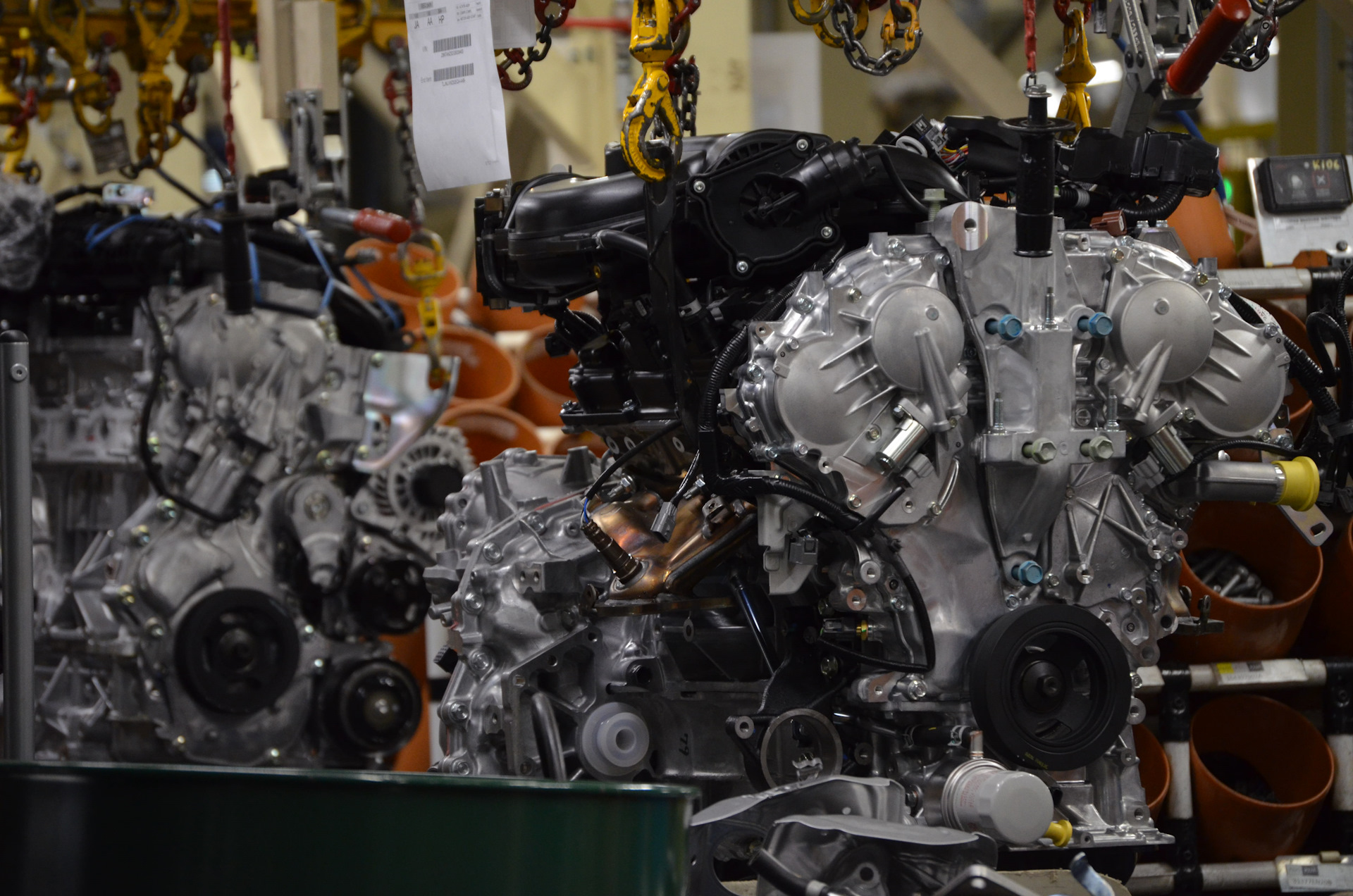 С другой стороны – зона подсборки двигателей. Моторы медленно движутся по монорельсовому конвейеру, позволяя спокойно производить с ними все операции, необходимые на каждом этапе.