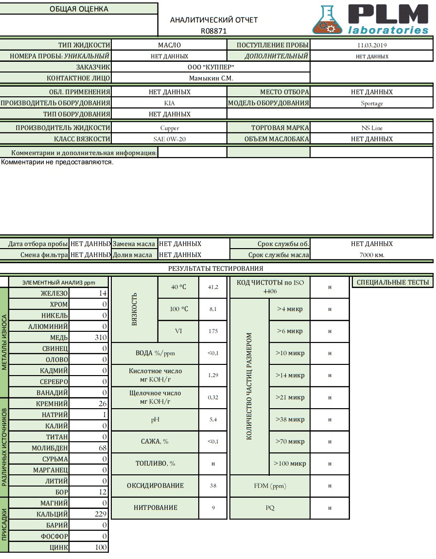Медь в анализе добавилась от долива свежего около 700мл из-за двух отборов на анализ 1800-4500км и замены фильтра (в свежем должно быть около 350ppm меди). Молибден, Кальций, Цинк перешли от старого масла Zepro.
