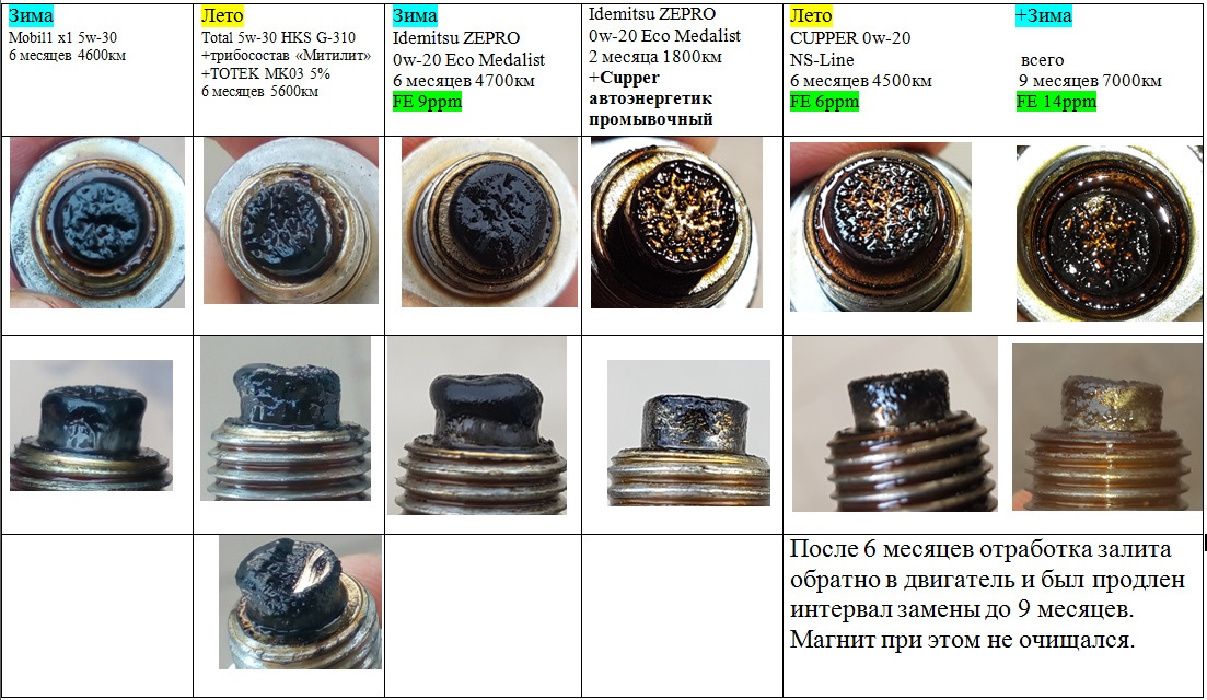 Однако у меня есть козырь в рукаве в виде магнита в сливной пробке www.drive2.ru/l/453740412310388882/, используемый в качестве простого индикатора износа железа и отбирает часть железной пудры, которая обычно на моторах попадает в масляный фильтр и анализы не видят реальной картины износа. Также есть доказательство — www.drive2.ru/b/524758967860069053/, что Cupper активно отмывает мои старые коричневые отложения (и элементы износа), оставляемые обычными маслами в труднодоступных местах двигателя (в картере). Страшно представить что там с поршнями!)) Они тоже темно-коричневые снизу — www.drive2.ru/l/497217575973814946/