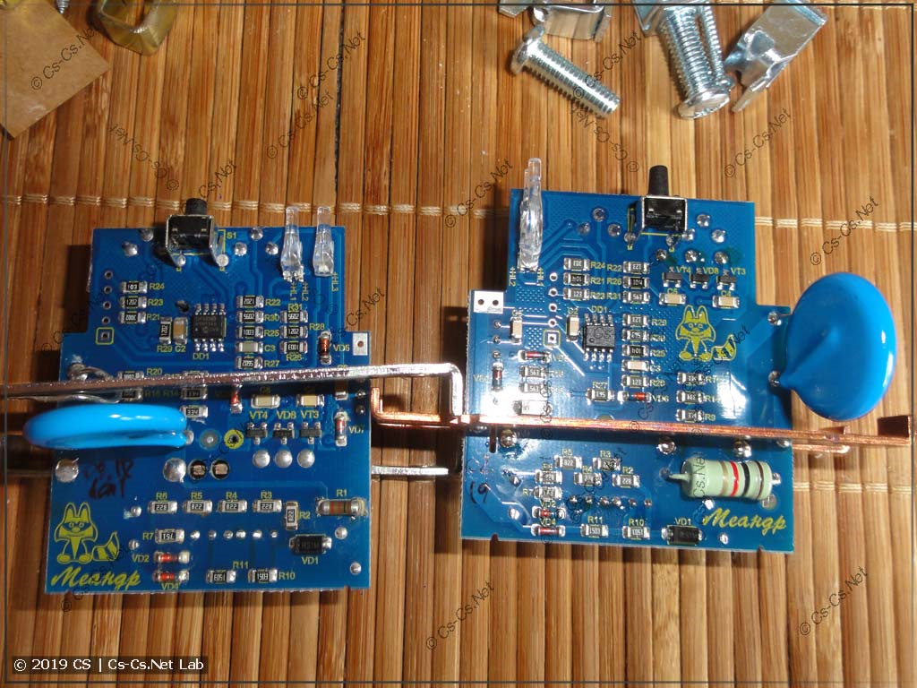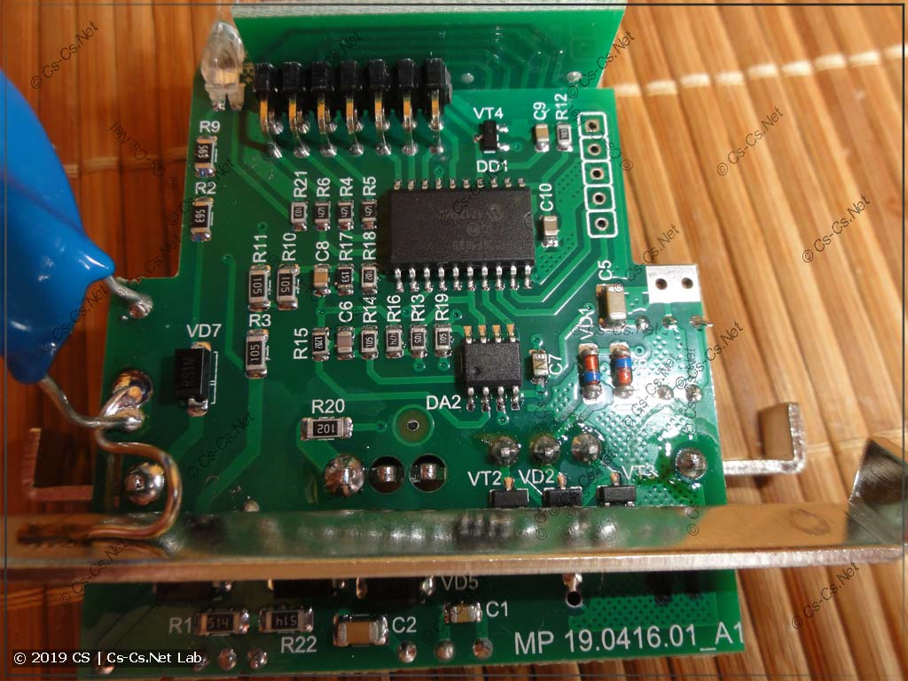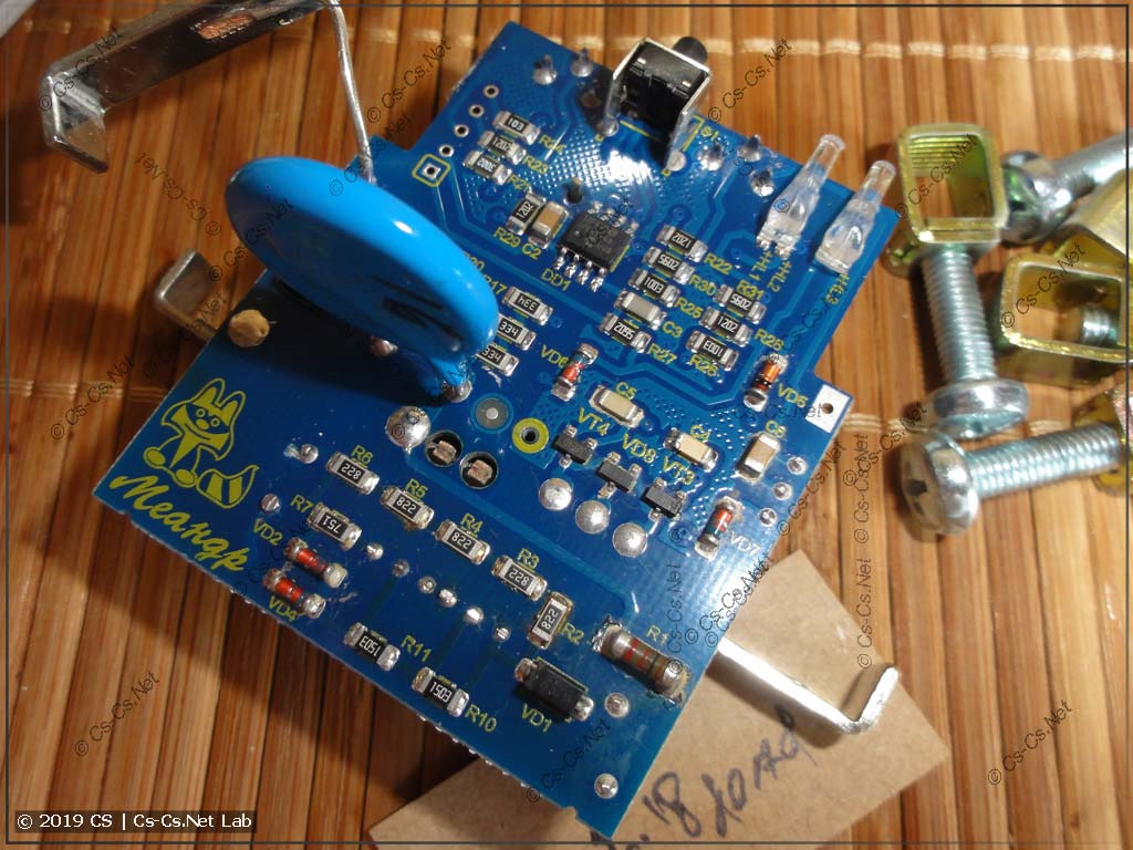Собственно, ради чего затевалась переделка платы — это ради хорошего дела — жёстко впаять в плату нулевой контакт УЗМки, чтобы он стоял на «ножках» на расстоянии от платы и никогда не смог её коснуться. Хорошее решение, удачное. И ещё раз спрашиваю: почему Меандр с таким трудом признаёт косяки разработок и всё равно пытается их нам продавать?