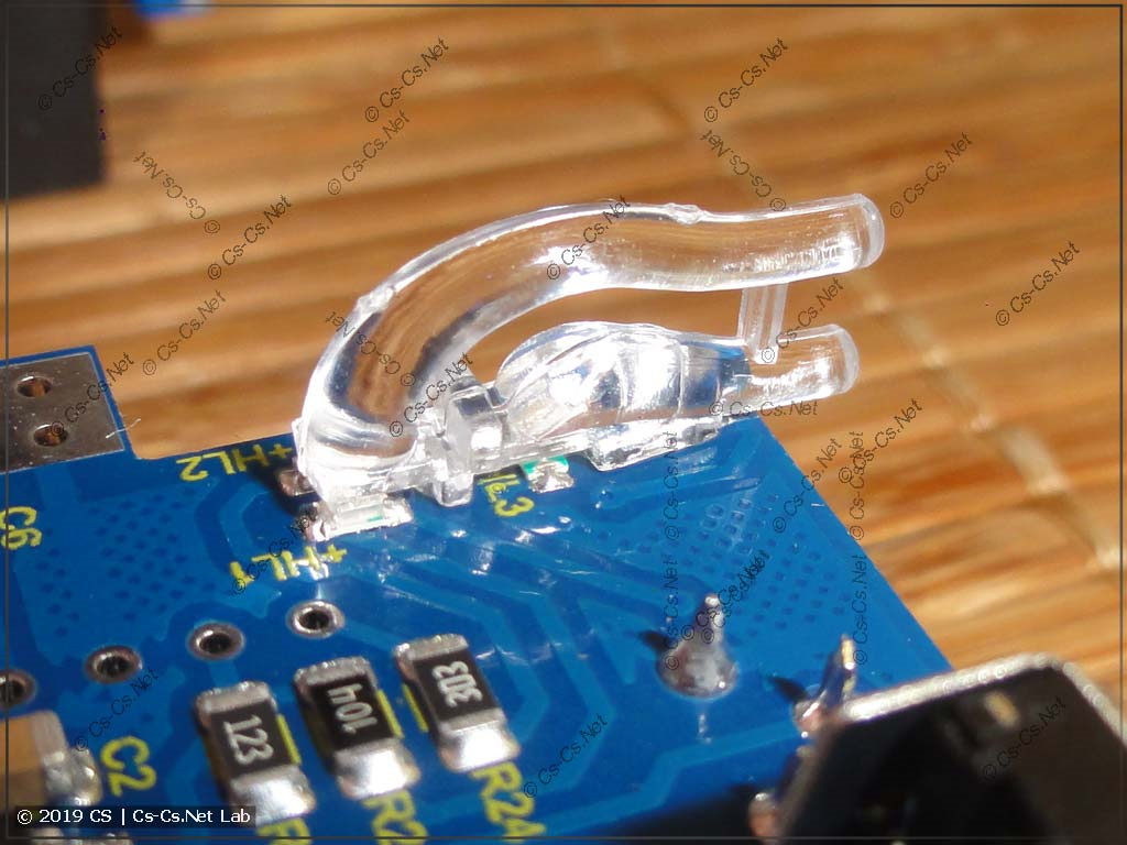 На плате переместились лишь светодиоды. Ну и балластный резистор снова стал большим и мощным (справа снизу), а не хилой фигулькой. Вот тут я снова хочу пояснений от Меандра: сколько денег стоит постоянно переделывать платы? И почему, если вы увидели неудачную компоновку платы, вы не выкинули всю их партию, а стали ставить кусок картона?