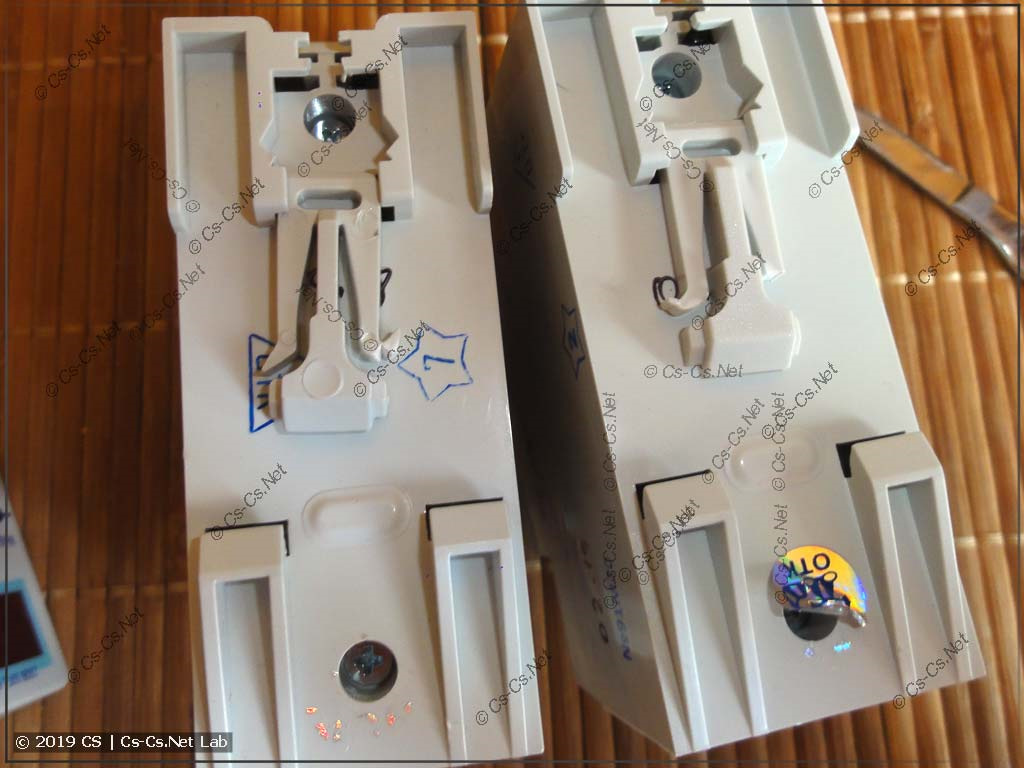 …А вот наклеить наклейку туда, где она должна быть — под пластрон, теперь не получается: там надписи «вход» и «выход» сделаны литьём. П*****! Лично я их теперь отскабливаю ножиком, чтобы получилась ровная поверхность под наклейку.