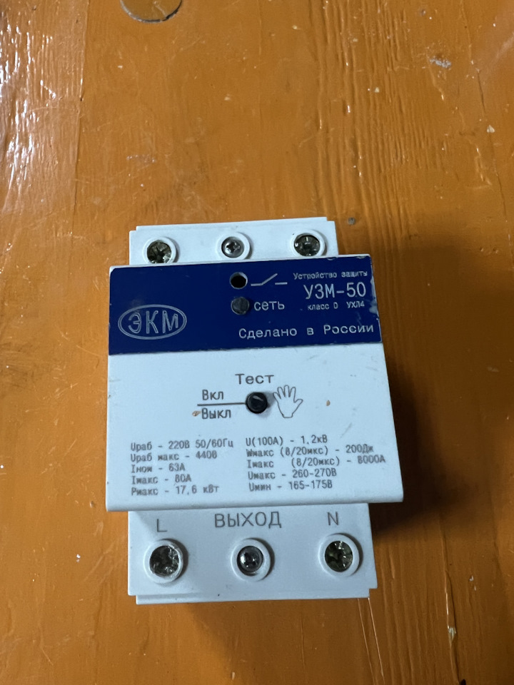 А вот фотка моего заказчика из РадиоЦентра, который попросил докупить ему УЗМок в квартиру (прям в этажный их поставить) и прислал фотку от местного электрика: на входе УЗМки фаза есть, а УЗМка дохлая. Причём из той партии, где (официально от Меандра) брака нету.