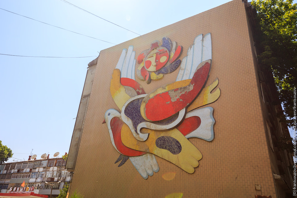 24. "Крылатую" советскую мозаику на одном из домов сфотографировал случайно, но, думаю, эта картинка идеально подойдёт для завершения рассказа. Вот такой интересный день выдался у нас в южной столице Киргизии.