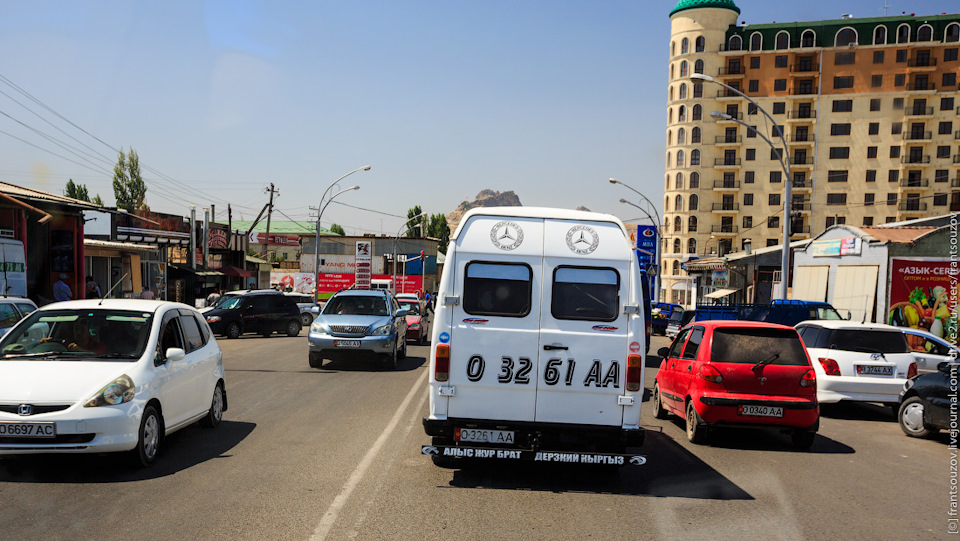 6. Ош. После десяти дней в горах и полного отсутствия машин в Алайской долине привыкаем к тому, что водят здесь "красиво и дерзко". Приходится постоянно быть наготове, так как не знаешь, чего ожидать от соседей в потоке. При должной наглости тебе уступают, а ДТП в Киргизии мы практически не встречали. В общем, люди ездят "по дорогам, а не по правилам".