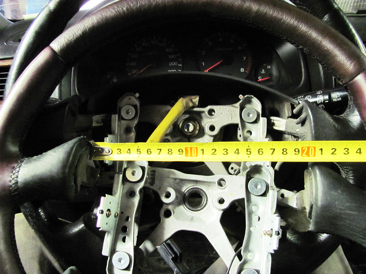 Расстояние между верхними спицами на родном руле 23 см, а на новом 20. Соответственно, моя подушка в новый руль не становиЦЦо! Хотя вся остальная арматура очень похожа.