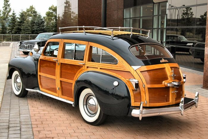 Вот Chrysler Town and Country (1941г), уже применяется стальная крыша в сочетании с деревянными элементами кузова (в конце сороковых, уже ограничивались накладными панелями)