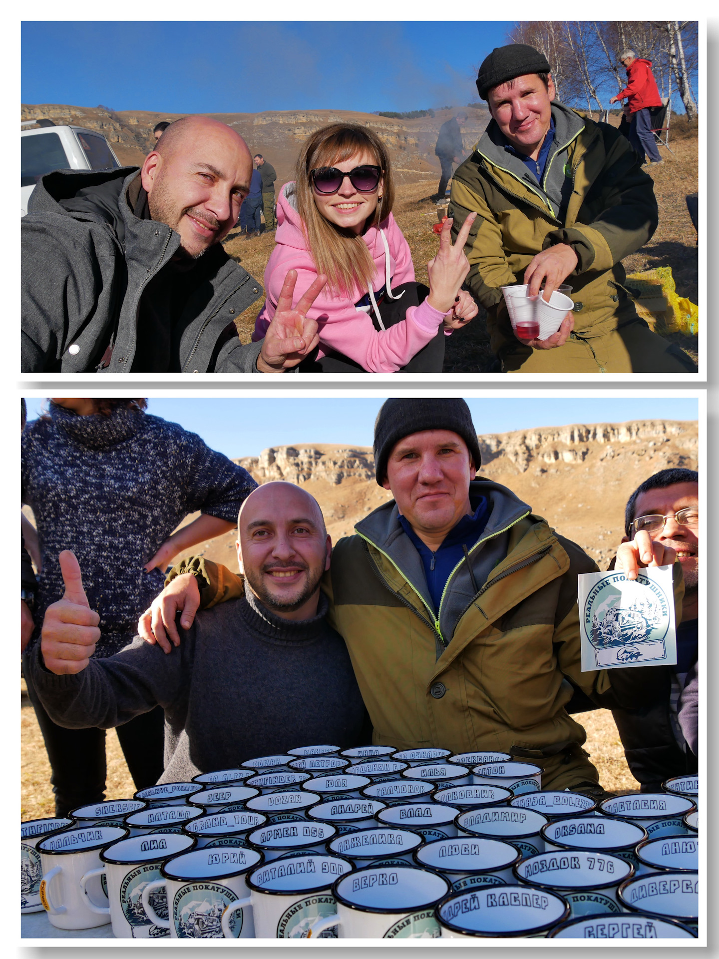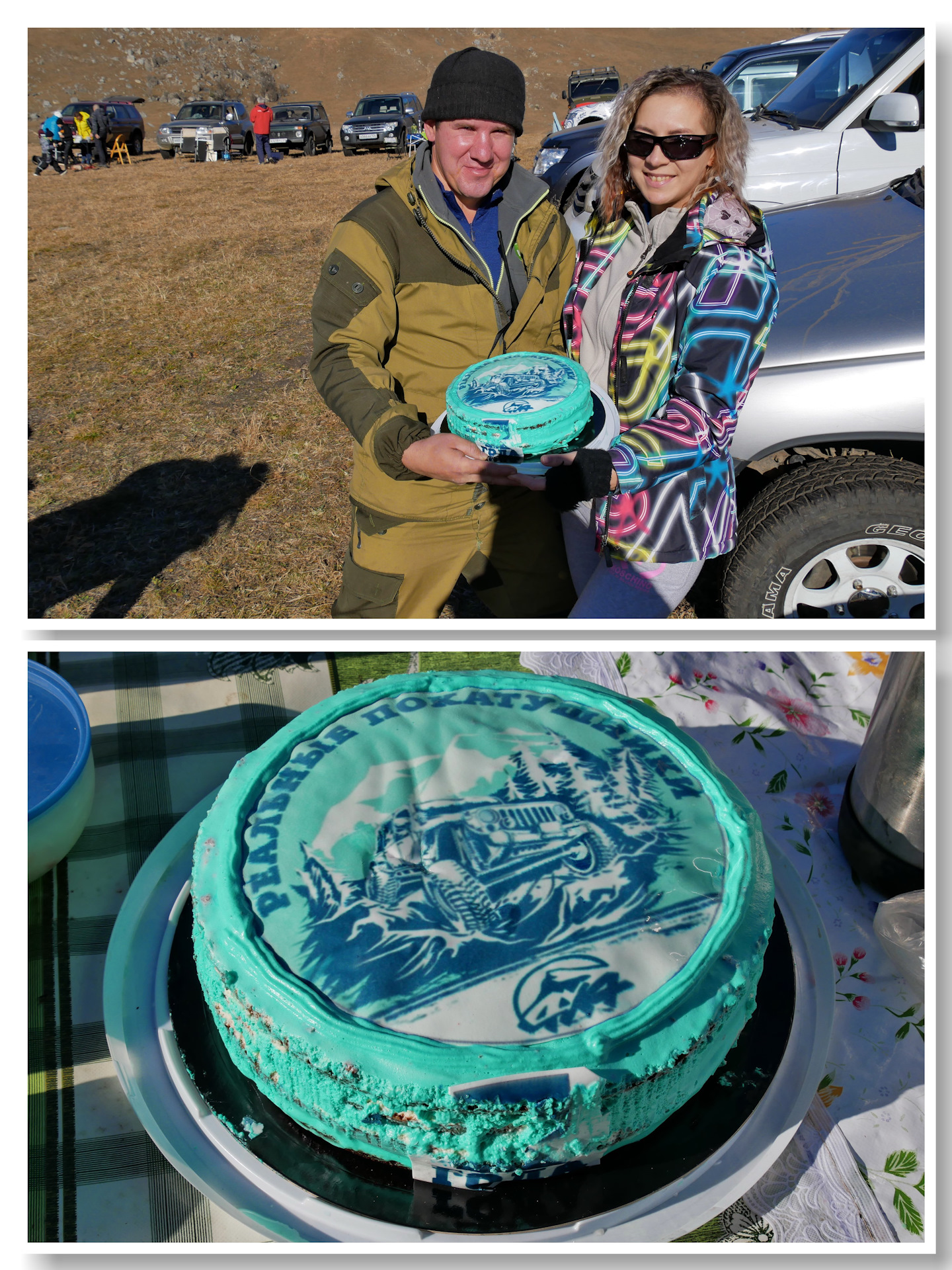 13. И вот, неделю спустя, 27 ноября, наступает тот самый момент, время Ч, иными словами 2-й день рождения группы Реальные покатушники. Собираемся в 8 утра на Свято-Никольском соборе и выдвигаемся к заветной поляне. Нас набирается около 60 автомобилей. Кто бы знал, как долго и сложно двигаться таким составом. Я теперь знаю! У кого-то спускает колесо и становится вся колонна, потому что дорогу знает всего несколько человек. Да и преодоление препятствий на пути собирает немалую очередь. Поэтому в идеале, подобные мероприятия в таком составе, лучше проводить в общеизвестном месте, с хорошим подъездом, чтобы каждый участник приезжал сразу в конечную точку к назначенному времени. Правда при этом не получится такой мощной колонны, как на фото.14. Зато отличная погода с лёгкой облачностью и великолепными видами по маршруту следования никого не оставляет равнодушной.15. Из-за задержек в пути, прибываем несколько позже, чем планировали, зато поляна отлично вмещает весь наш немалый коллектив, по примерным прикидкам около 150 человек. А всего в группе состоит 250 человек.16. Разжигается масса костров, разумеется в мангалах, и праздник начинается!17. Ну а какой-же День Рождения без торта? Вот такой замечательный гвоздь нашей программы приходится, как нельзя кстати! Красив снаружи и вкусен со всех сторон!18. Затем вручение подарков: наклейки, кружки. Атмосфера праздника царила со всех деталях )))19. Флаг нашей группы держит её основатель Сергей Крутенчук