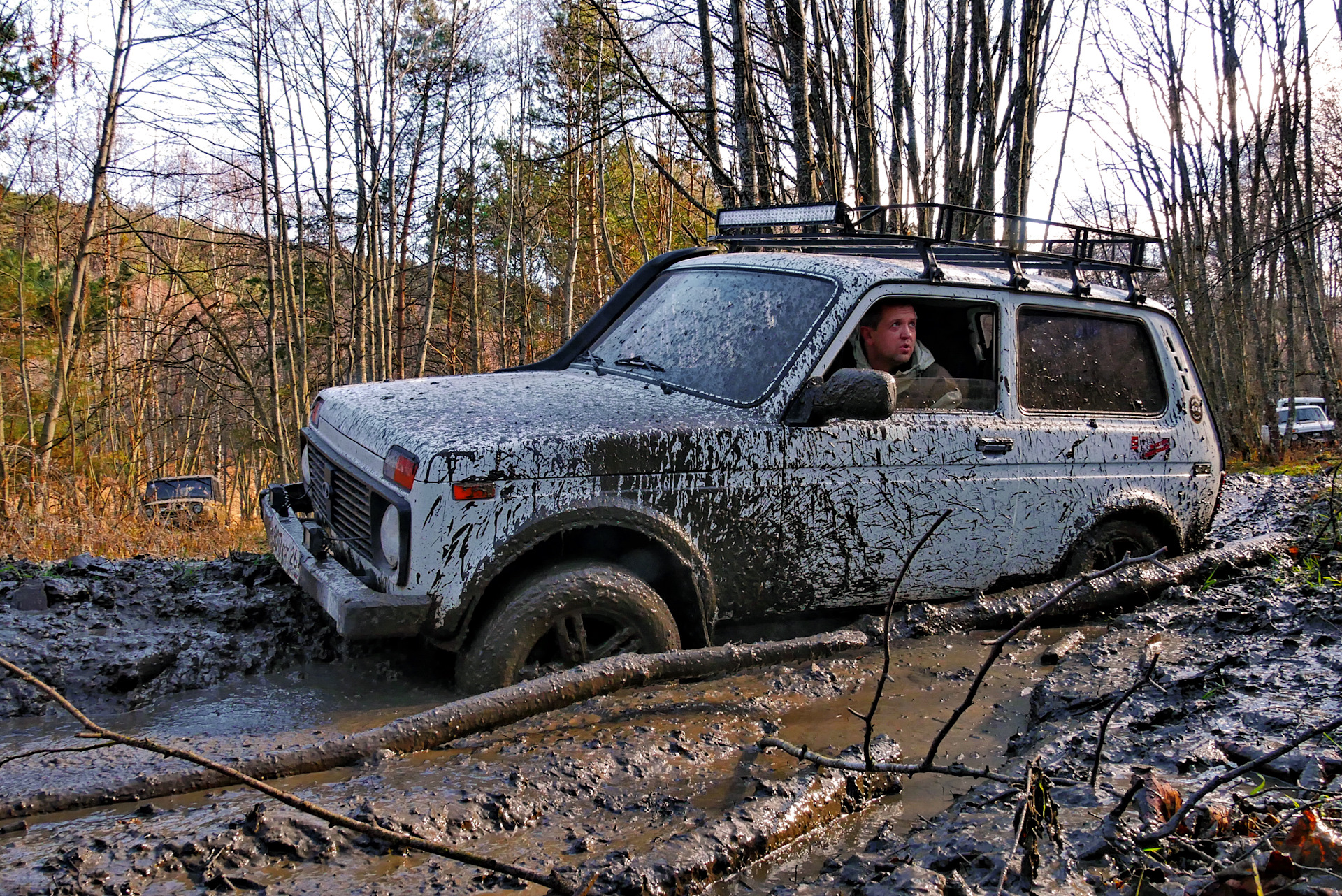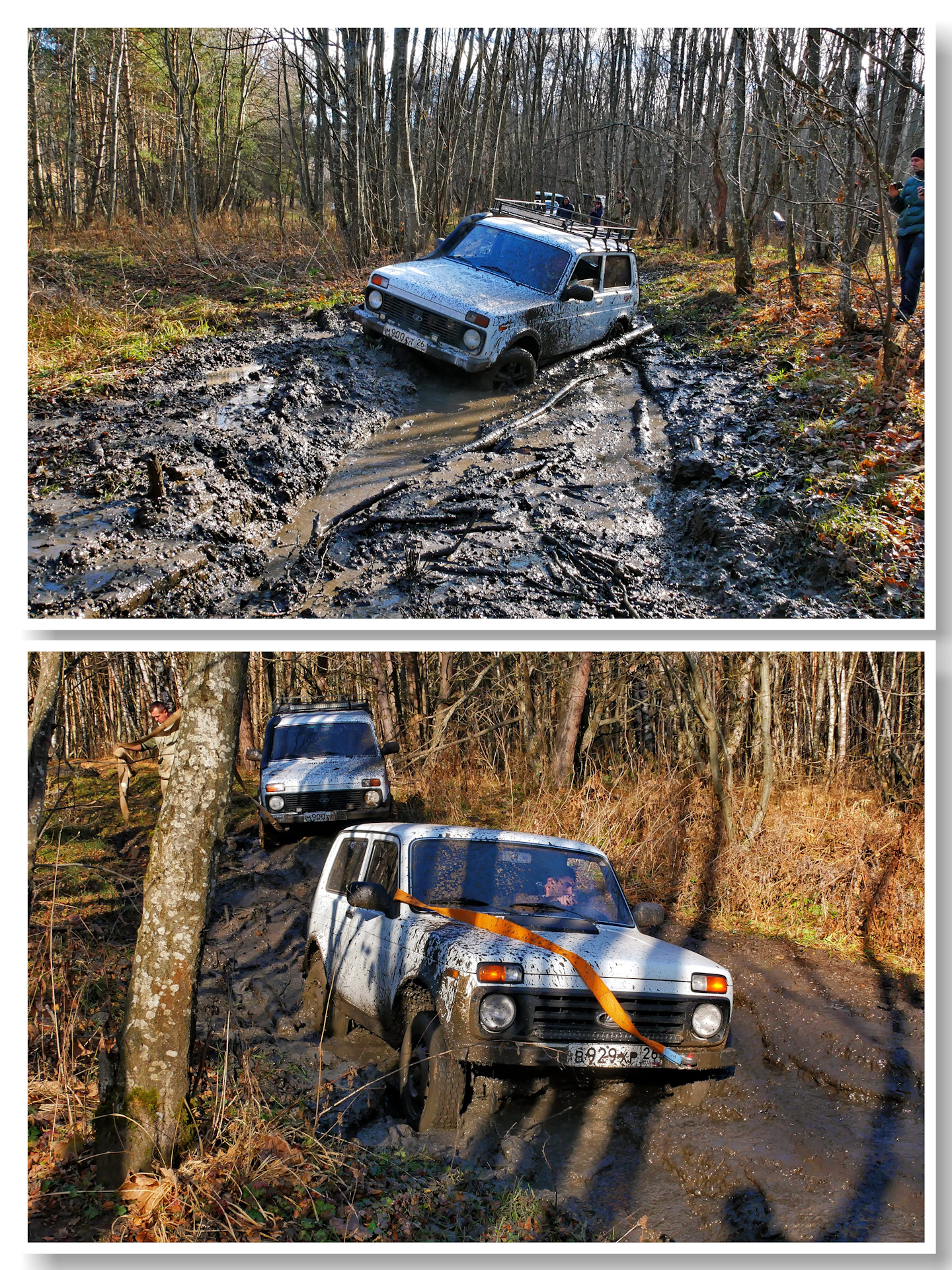 Хех, мы тоже так на рыбалку ездили на Ниве. -а чо, давай там поедем, грязь помесим… Ну и стояли точно также, как нива на 1 фото. Тоже утопили по самое не хочу. В этом то и весь смысл бытия гряземесов)))