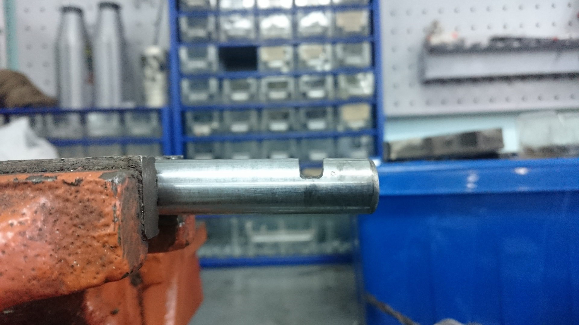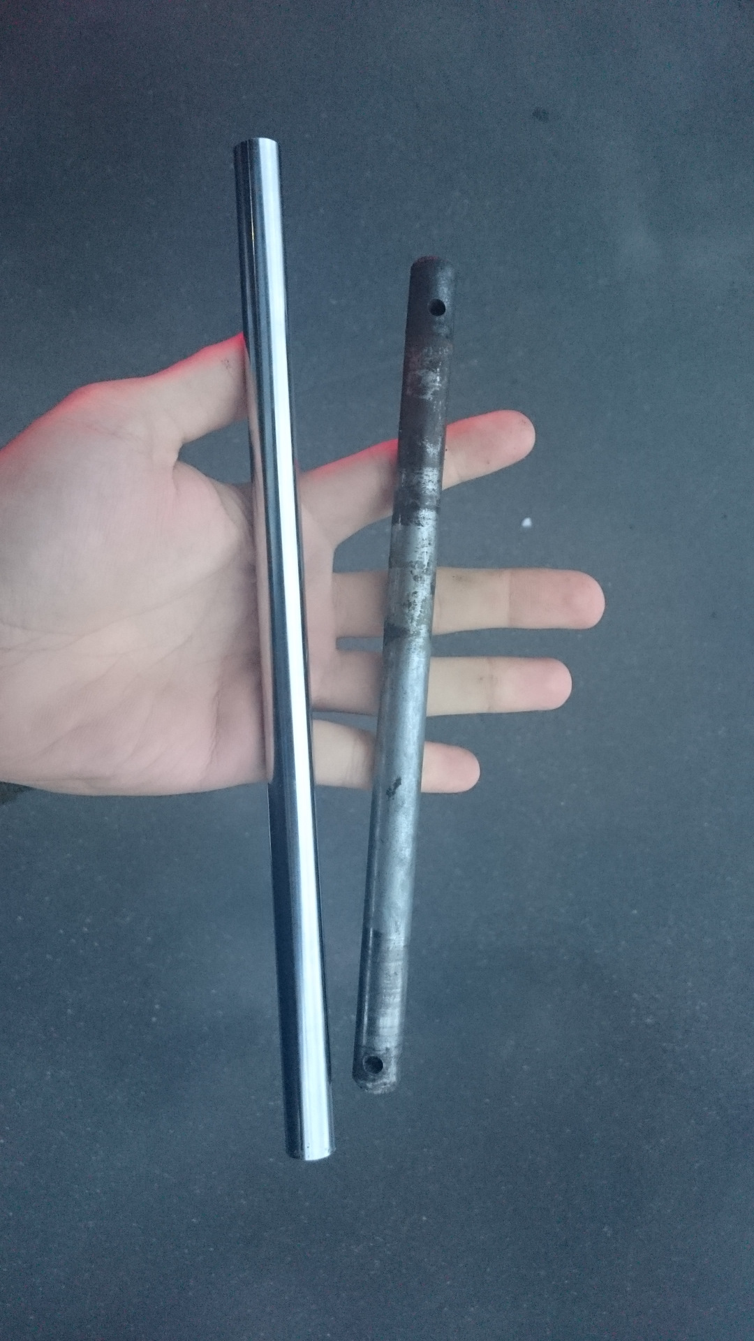Перед заказом втулок я долго думал, что делать с валом. Вытачивать, закалять и хромировать выходило очень дорого (хотя и наиболее правильно), но я решил пойти другим способом. Нашёл компанию, которая продаёт готовые закаленные прутки для ремонта гидроцилиндров спец техники. Среди них были и диаметром 15 мм, который был мне и нужен. Мне согласились отрезать кусочек: