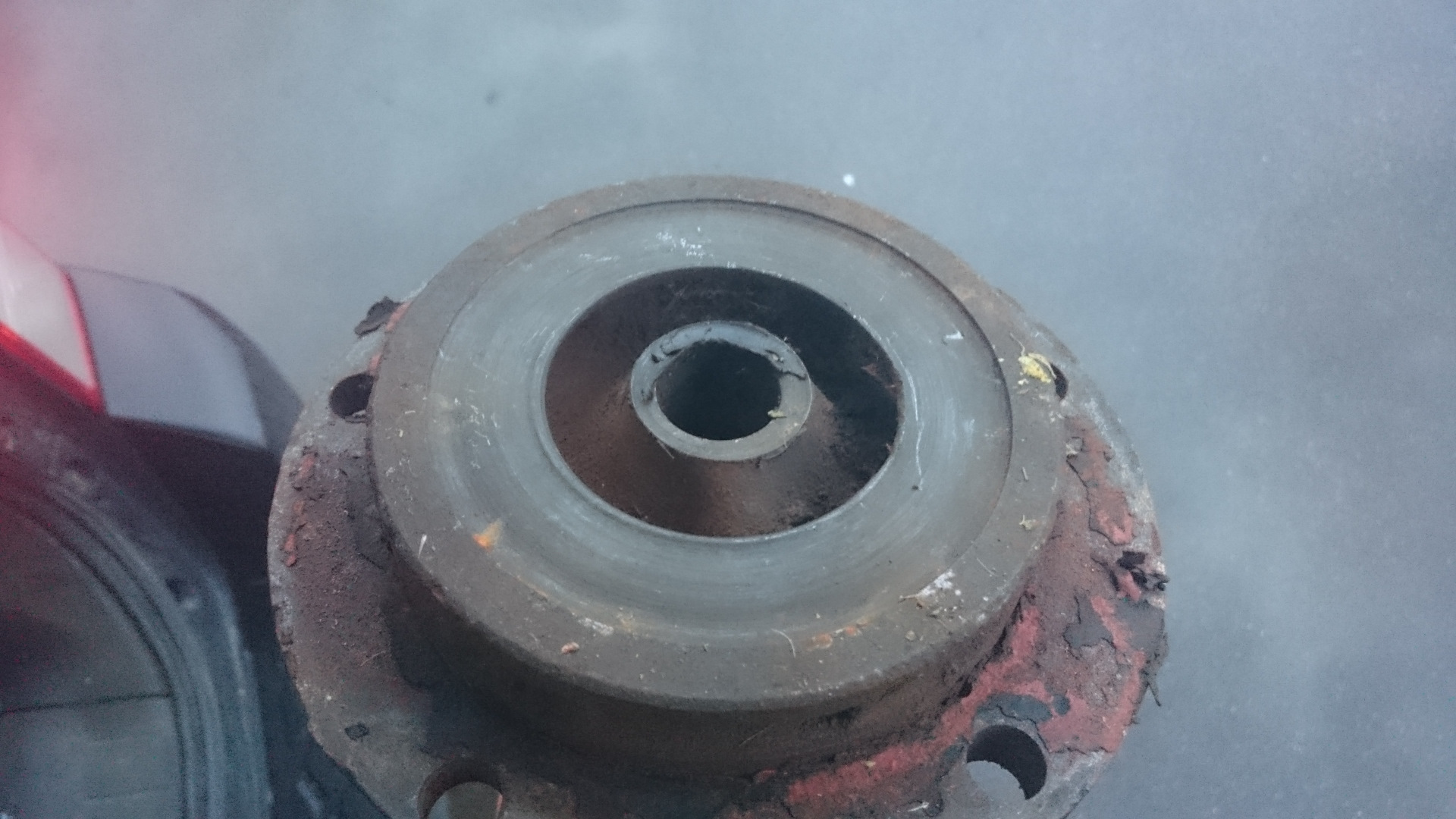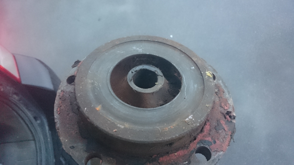 К сожалению, в том году у меня что-то случилось с картой памяти на телефоне и очень много фотографий процесса были утрачены. Часть из них удалось восстановить, но фотографий окончательного варианта помпы, когда она уже была готова к установке, не сохранилось( Здесь я готовил к установке шкива на корпус помпы: