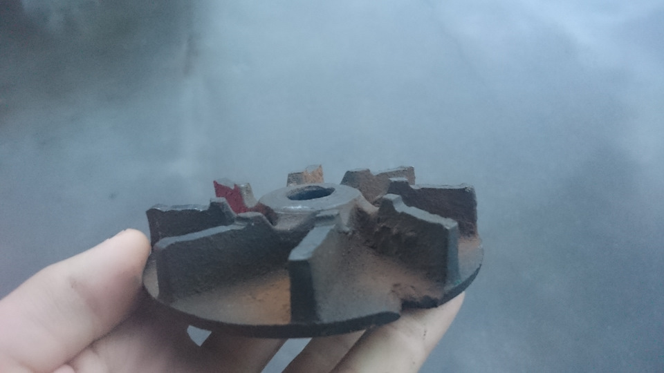 Более того, свободный ход вала данной помпы должен быть отрегулирован, чтобы между крыльчаткой и корпусом был необходимый зазор. Раньше, видимо, этим пренебрегали и это привело к износу как крыльчатки, так и корпуса: