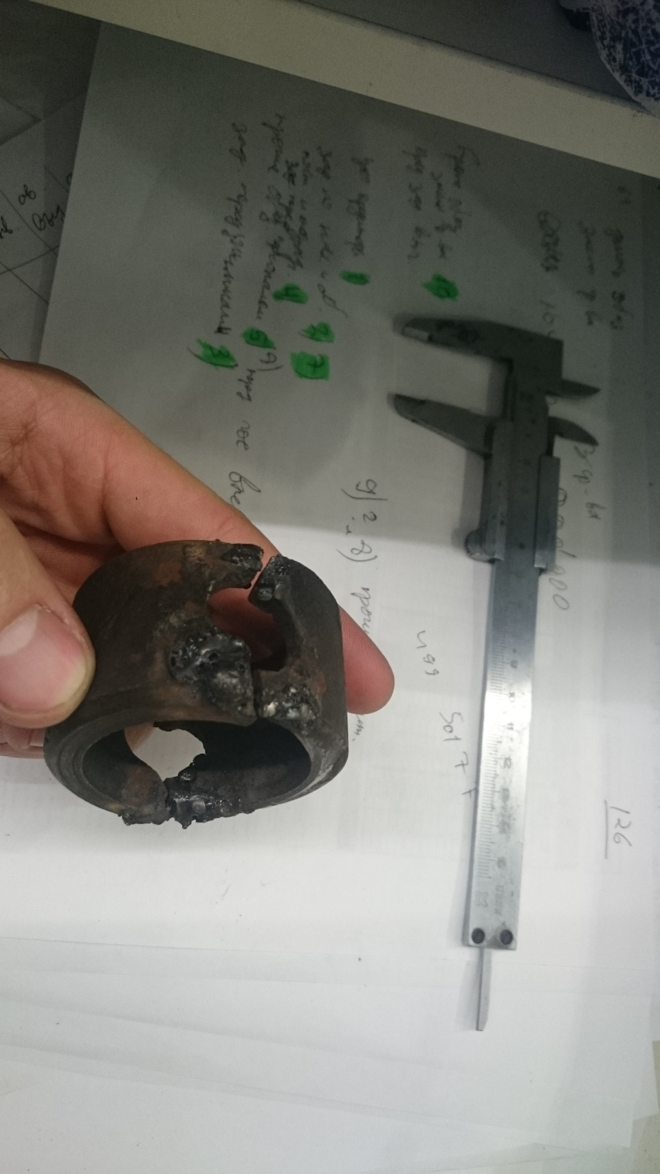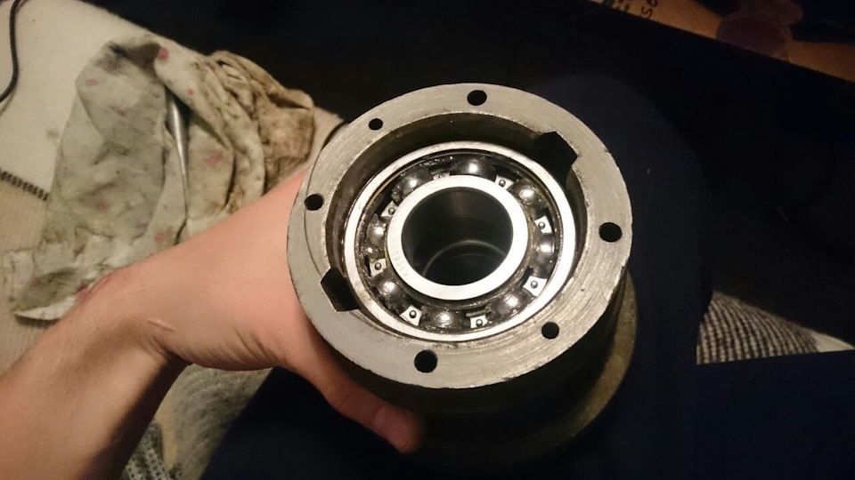 Дистанционная втулка, стоящая между подшипниками шкива, была также сломана, потом похоже сварена, и снова сломана: