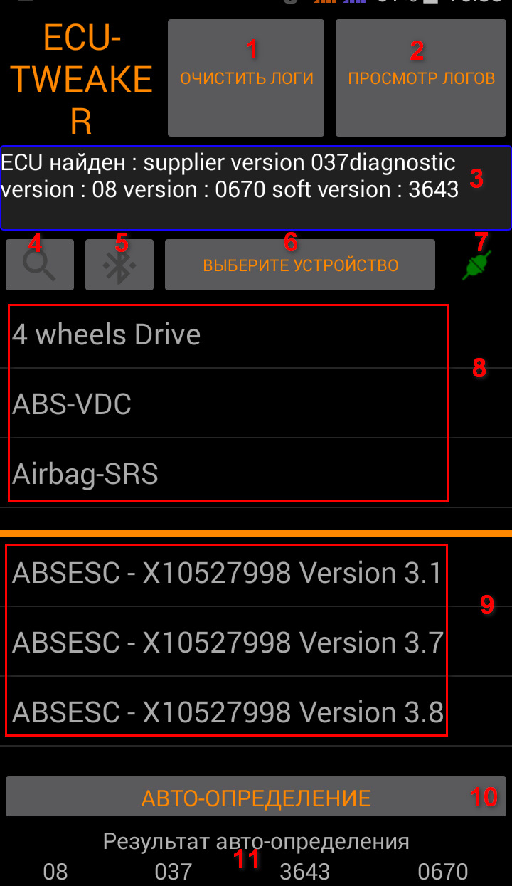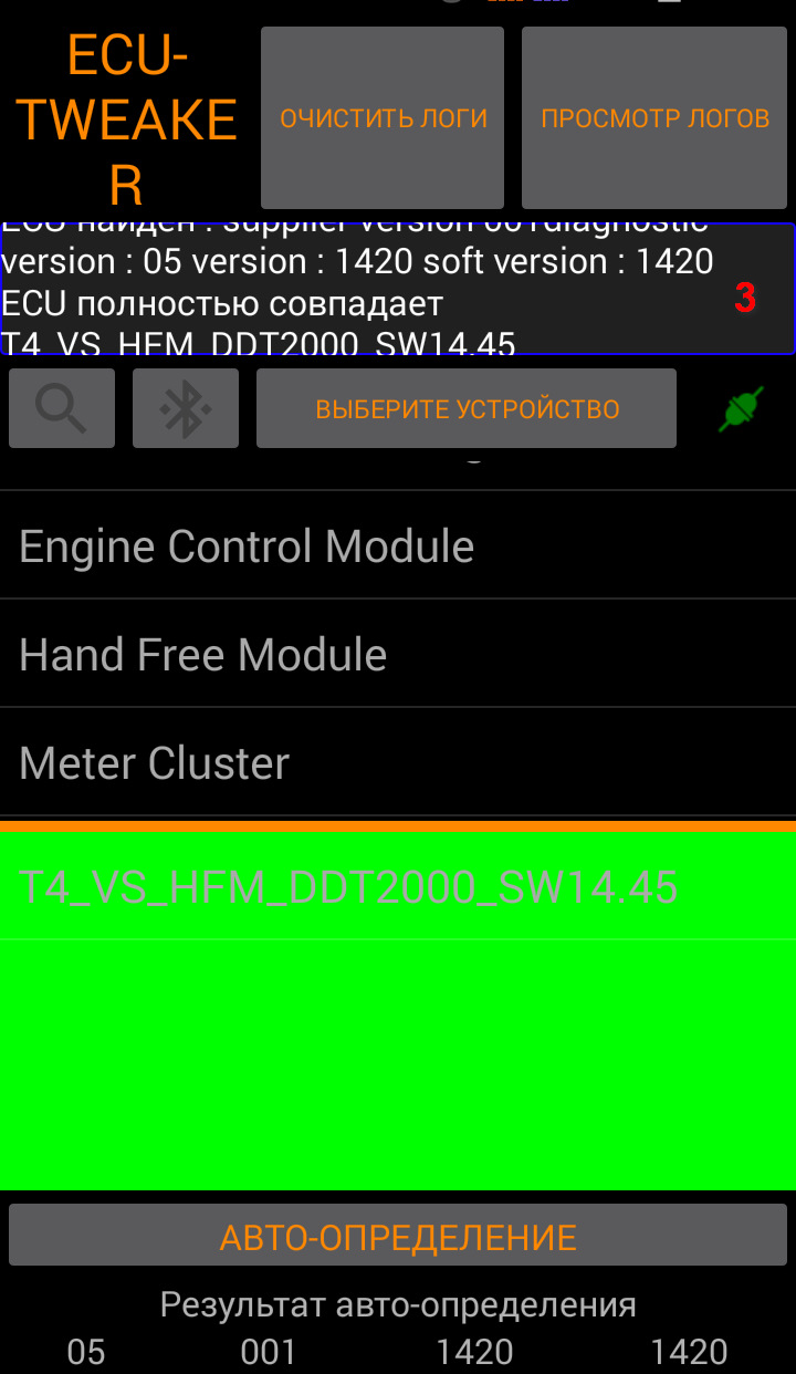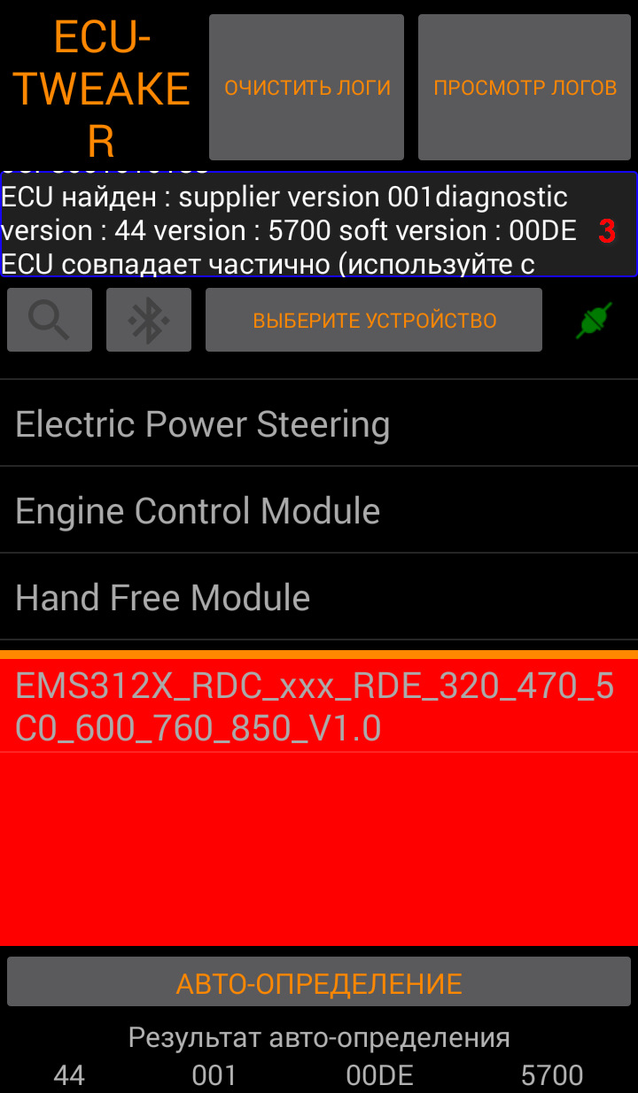 Автопределение считывает идентификацию блока и при не полном совпадении с данными в файле базы — не будет найден подходящий файл, т.е. вам придется выбрать вручную из списка более подходящий файл самостоятельно (подсвечиваются не блоки, а файлы базы)